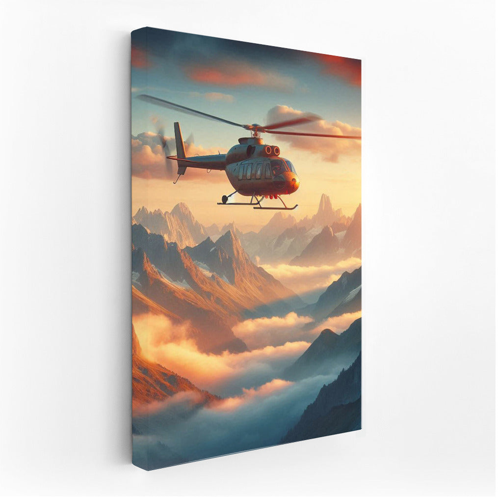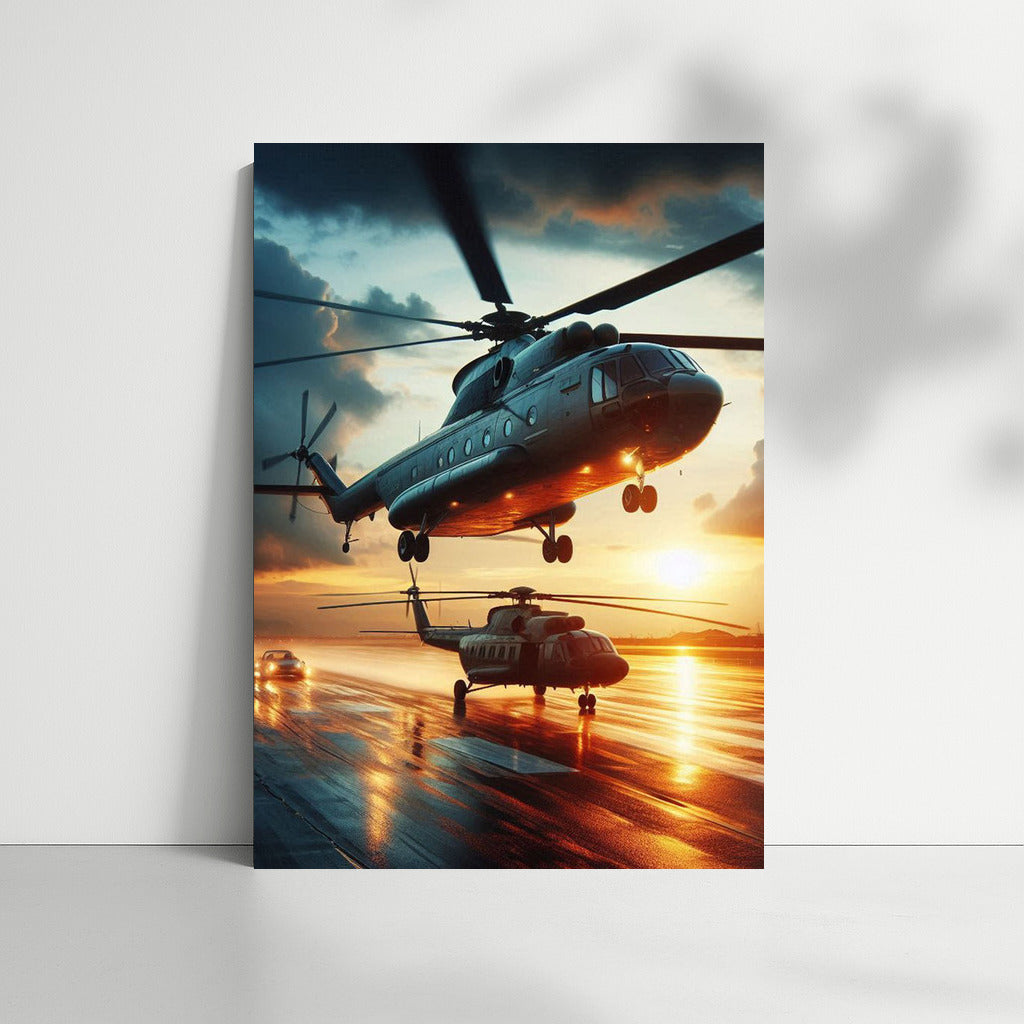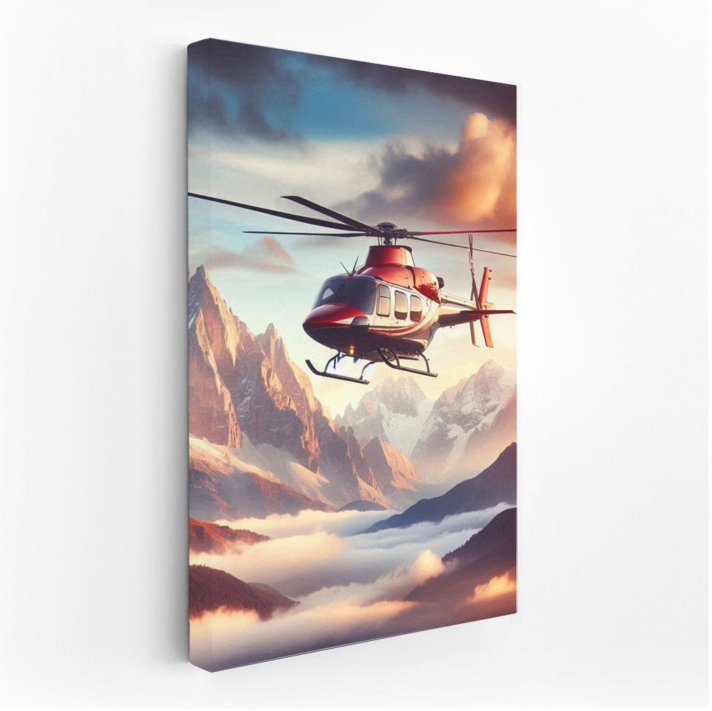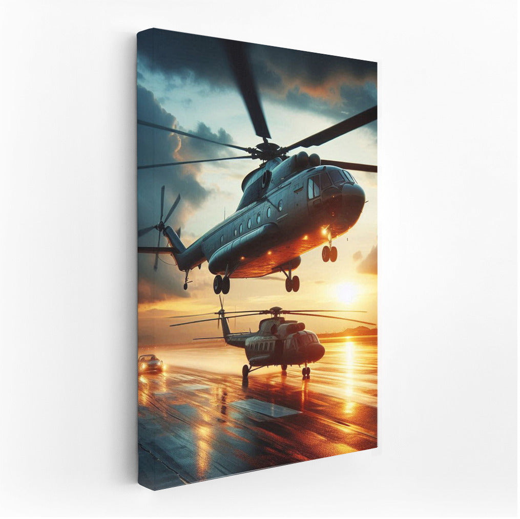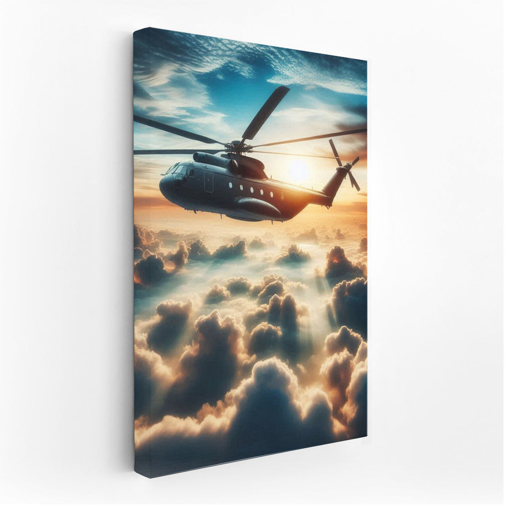 Helicopter propellers seem to twist the air, creating dynamics on the canvas print. Abstract details transfer to the world of speed and freedom.