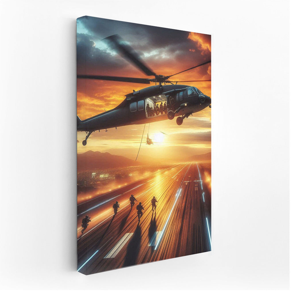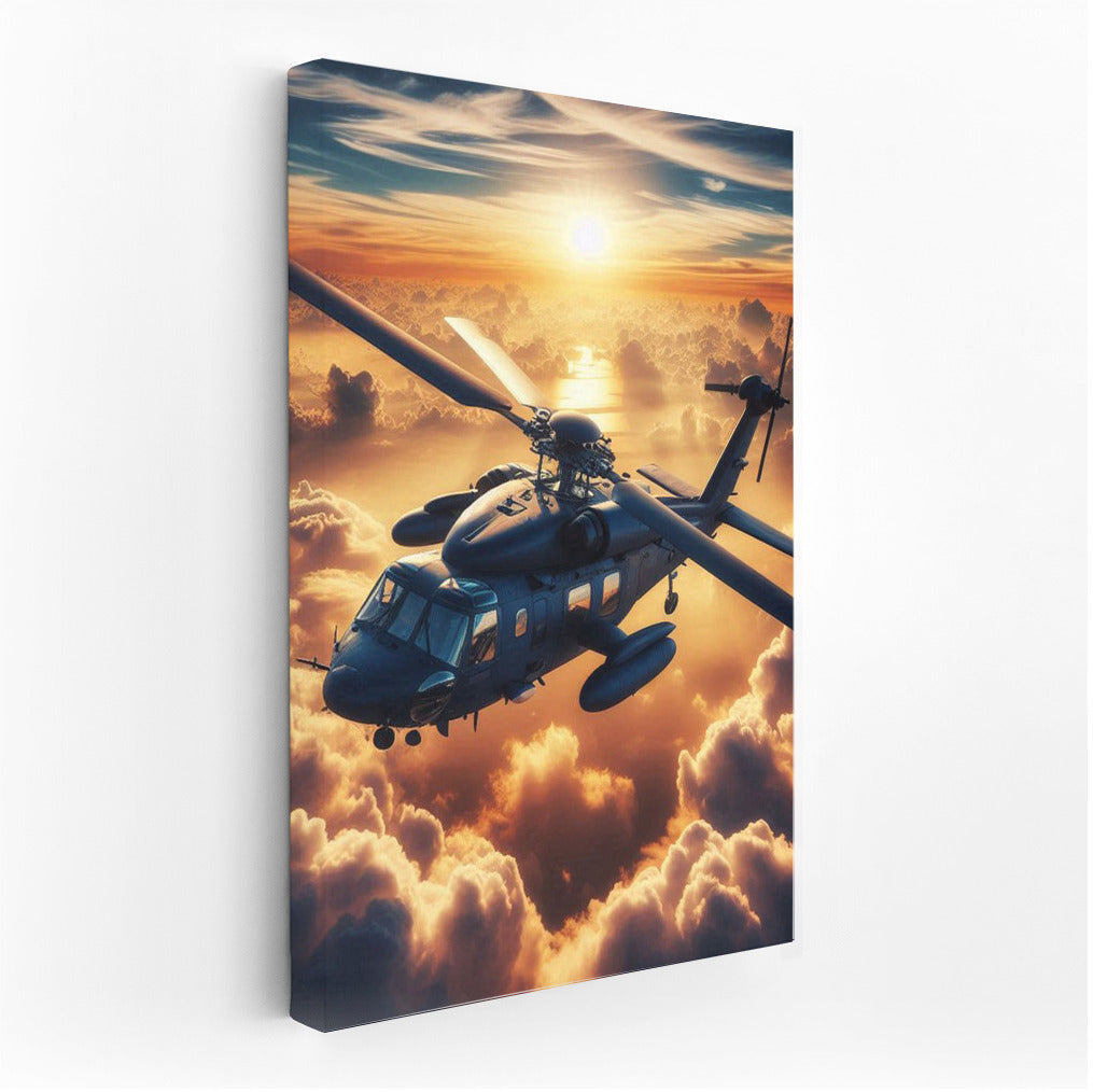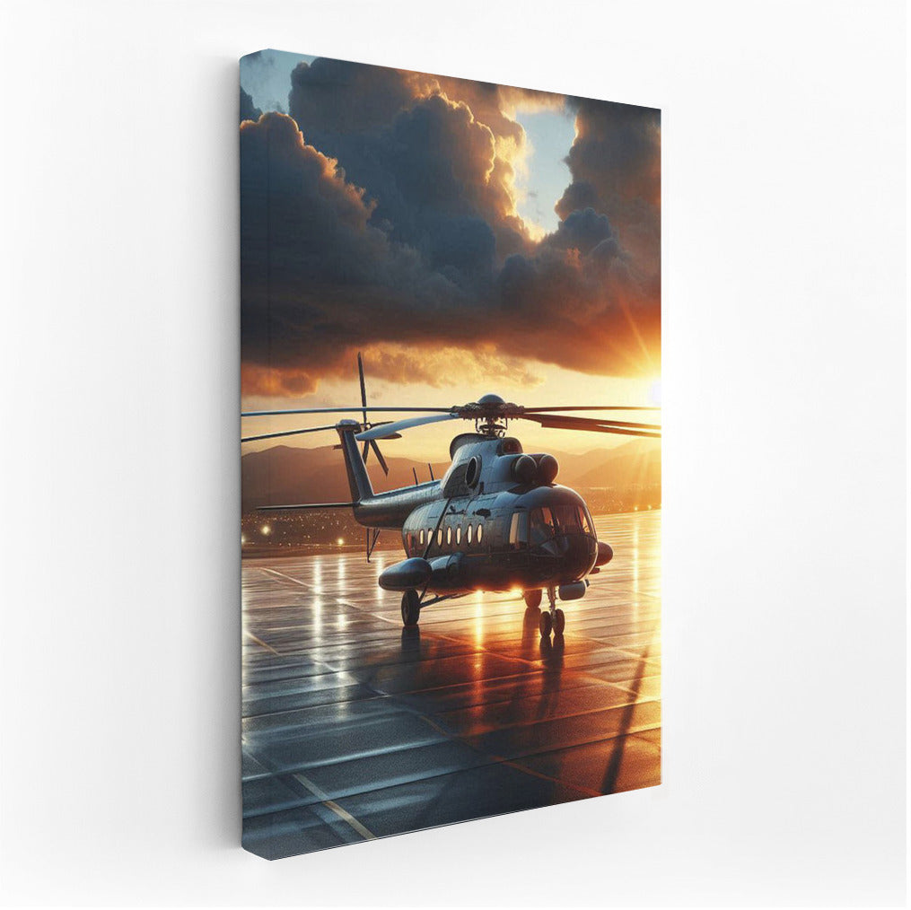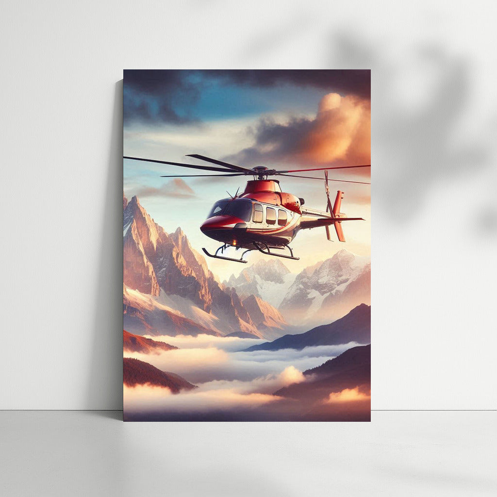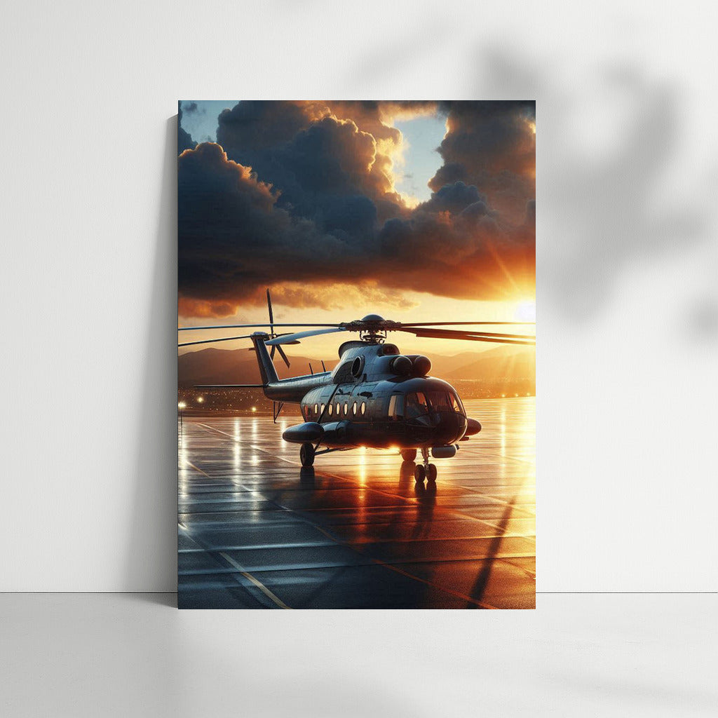 Helicopter propellers seem to twist the air, creating dynamics on the canvas print. Abstract details transfer to the world of speed and freedom.