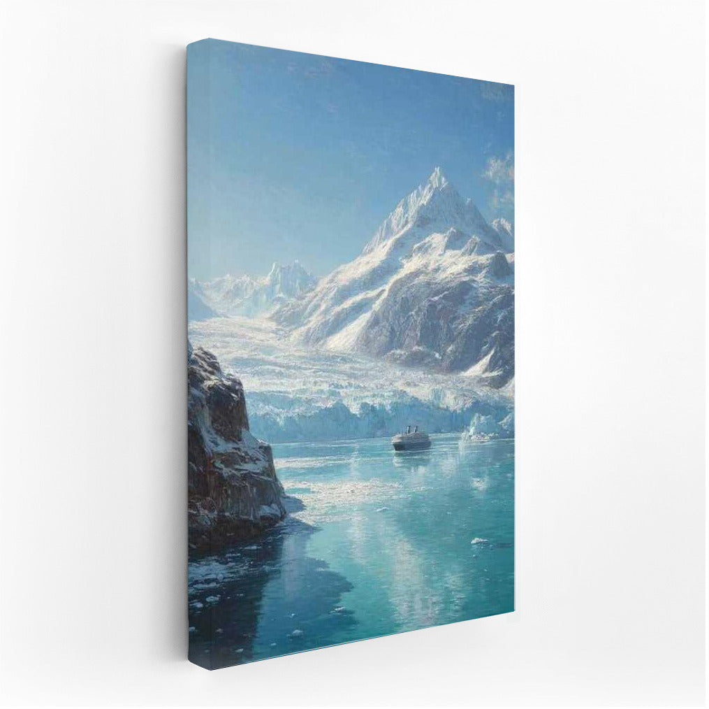 Glaciers and icebergs are ancient giants of ice, captivating with their fragile power. Their grandeur inspires artists to create unique canvas prints.