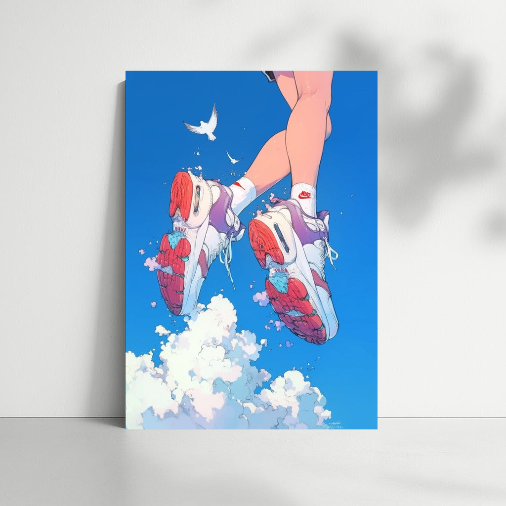 Among the many paintings on the wall, the posters with the Nike logo stand out for their special dynamics. These images convey the energy of movement, inspiration and modernity.