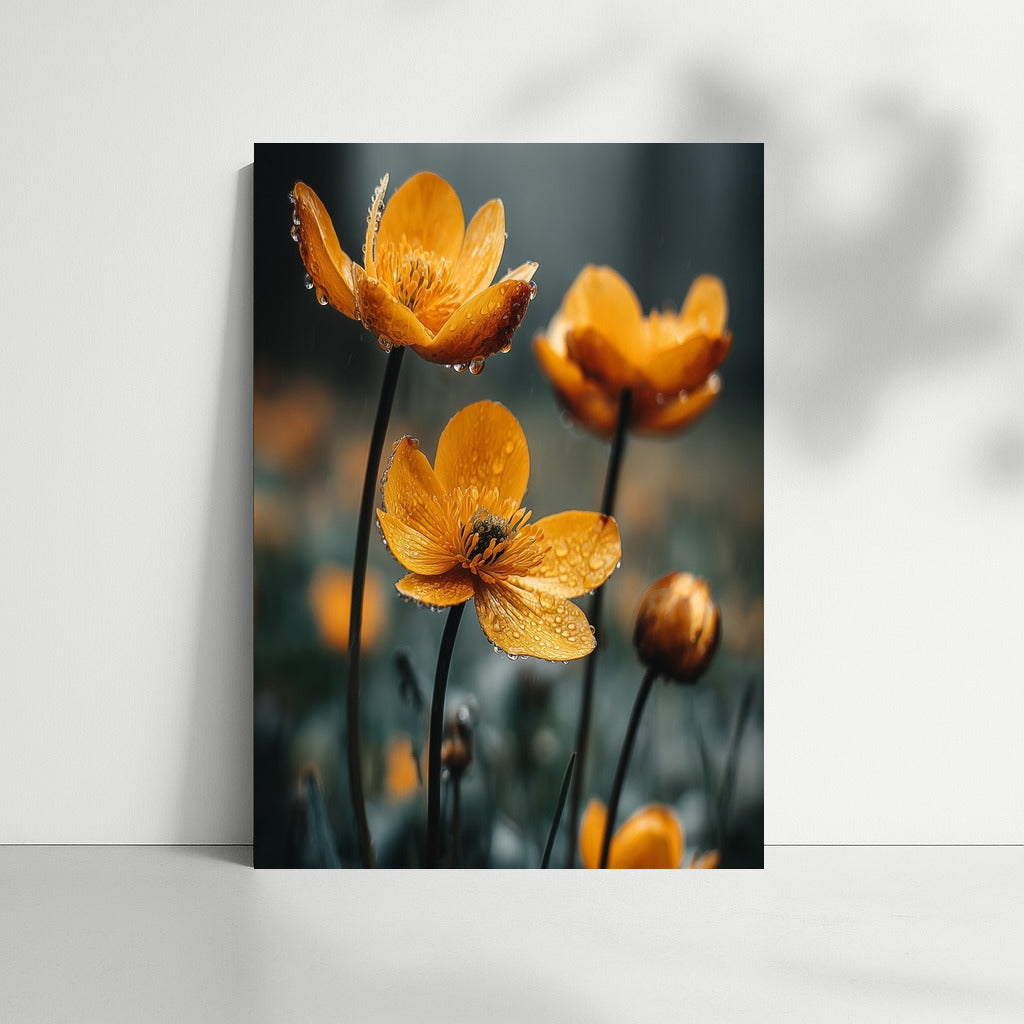 The bright orange flowers on the poster add vitality to any space. They are like a warm flash of sunshine on the wall, enlivening the everyday.