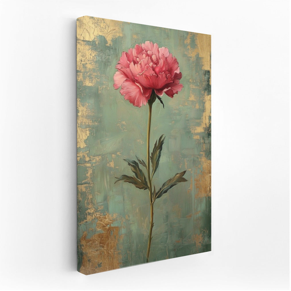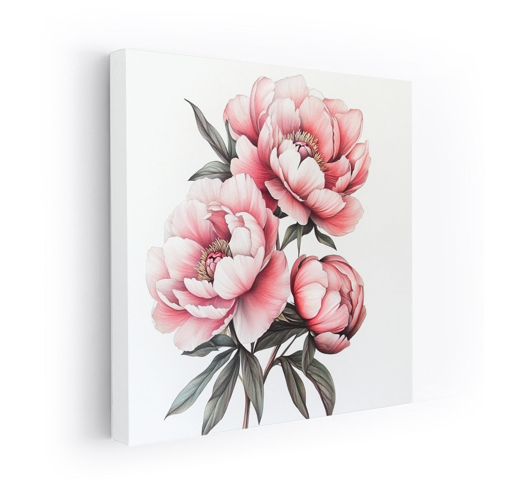 Peonies, their delicate petals and soft shades of pink, seem to come alive on the canvas print. They add warmth and tenderness to the room, creating coziness.
