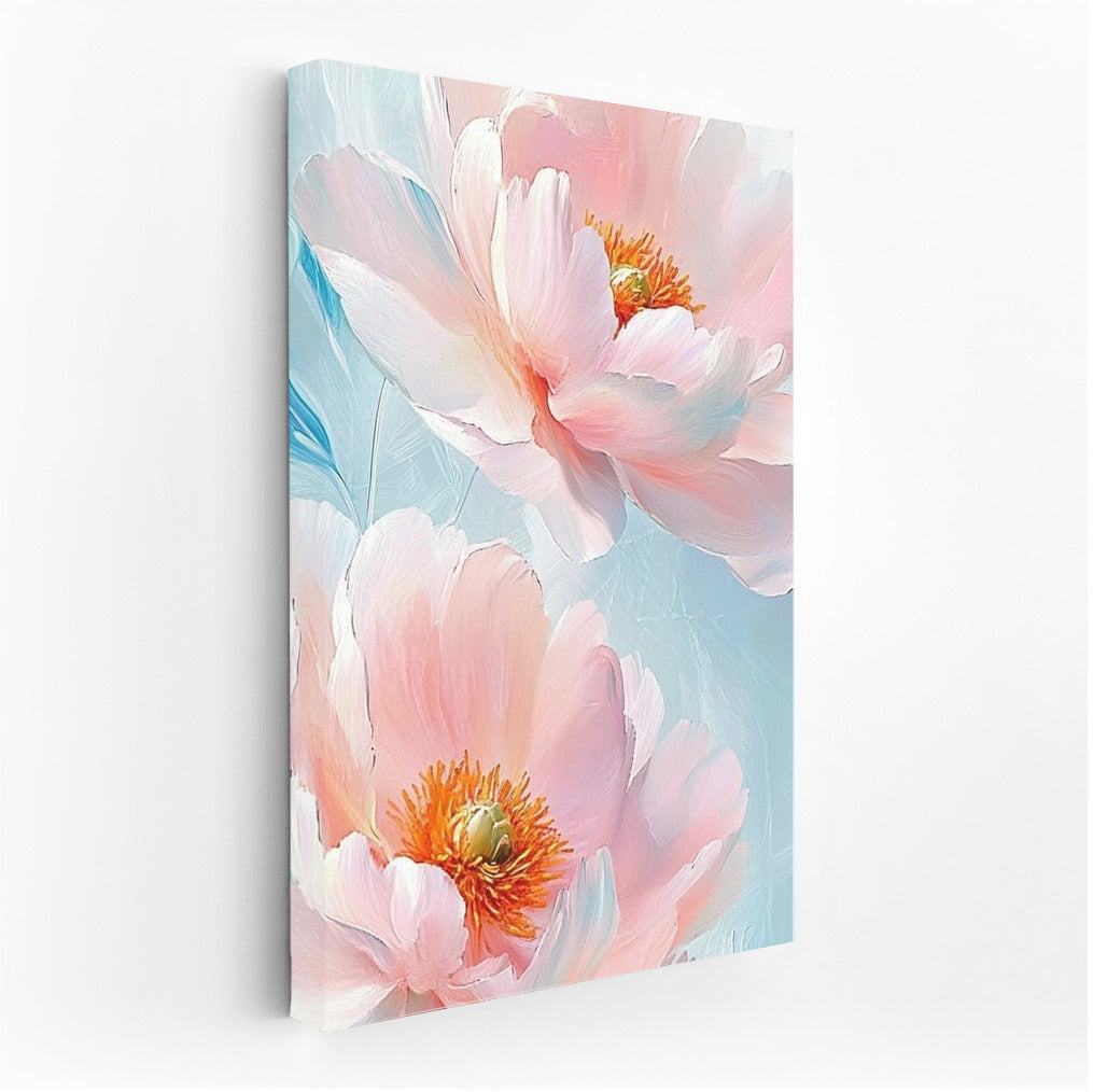 Pink flowers on canvas print look gentle and calming. Their soft shades enliven the space, adding harmony and warmth to the interior.