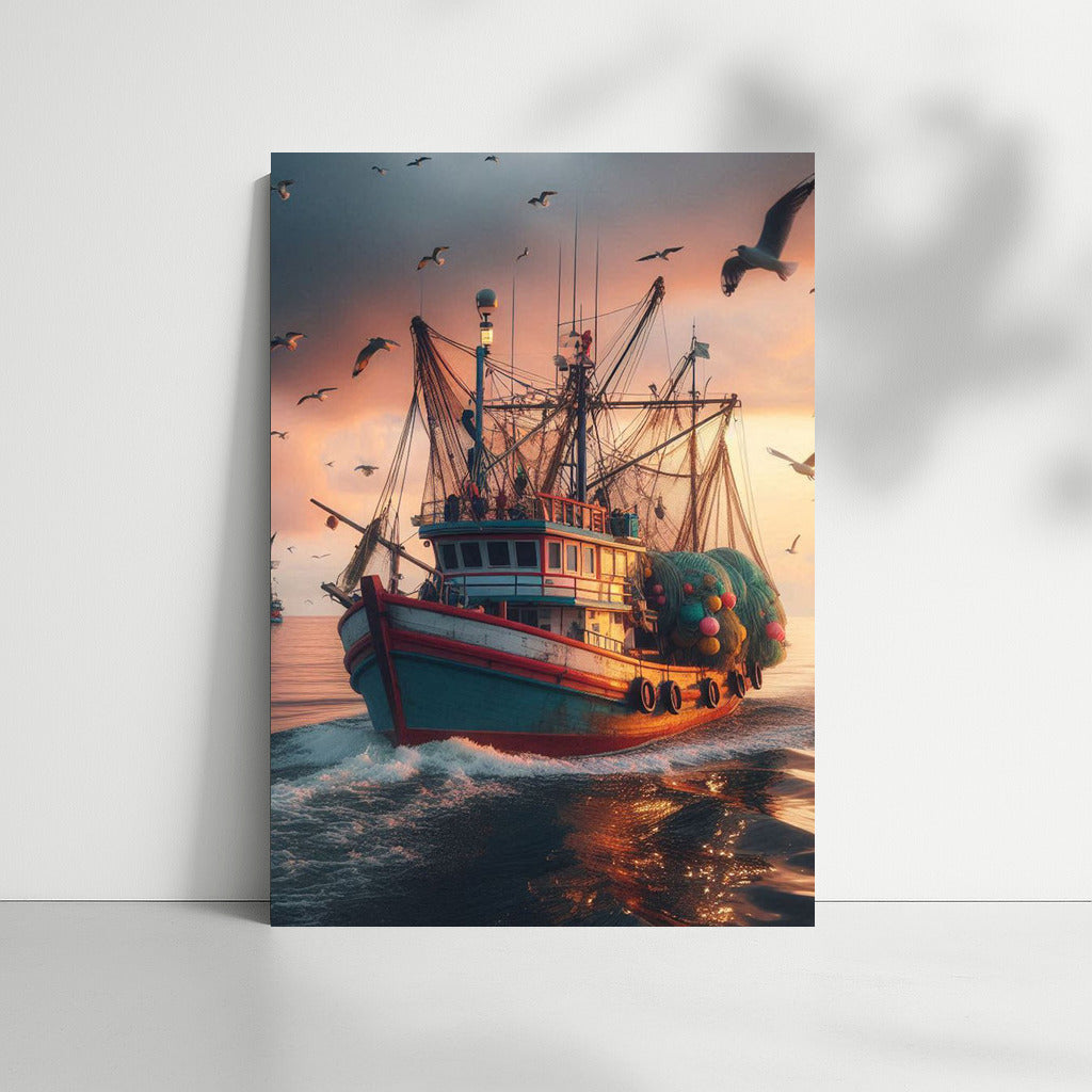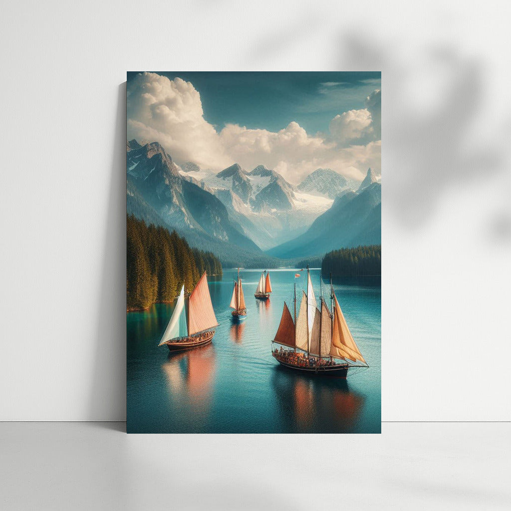 The ships in the painting seem to be frozen in an eternal voyage on a calm sea. This wall art brings a sense of endless space and adventure. Every detail on the poster is filled with inspiration for dreams.