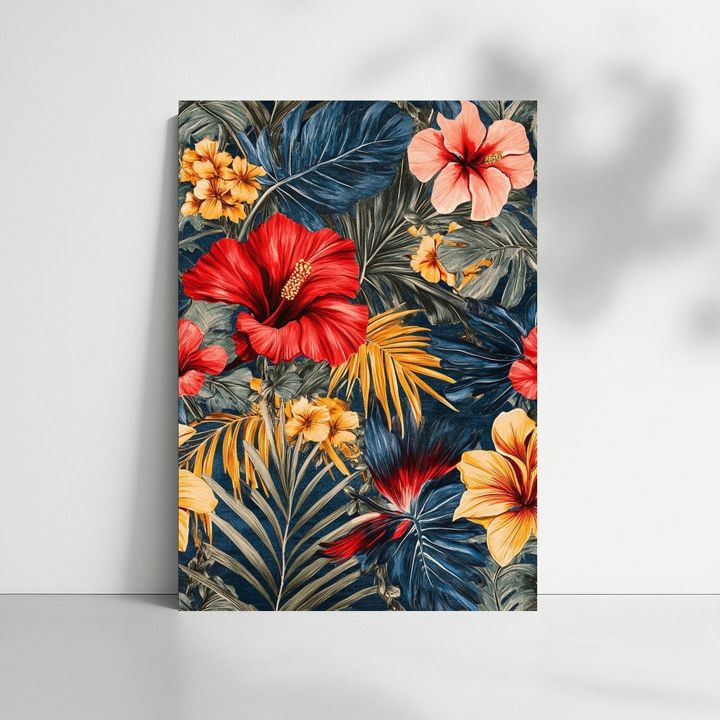 Tropical flowers are an explosion of colors and shapes that you want to admire forever. Making them the main theme of a poster or painting means bringing a little brightness and life into your home.