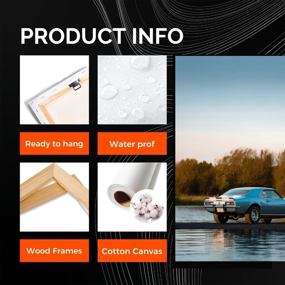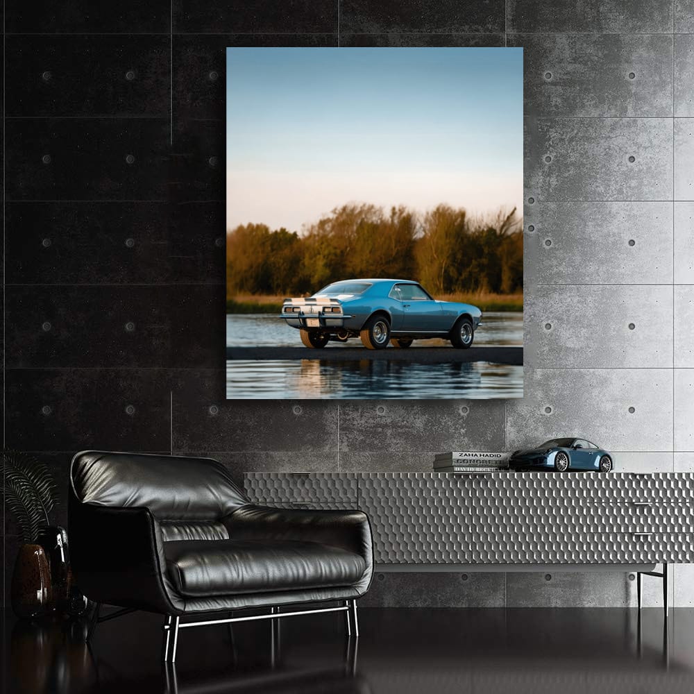 This 1968 Camaro poster is a blast! The car is tearing into nature as if to say, "I'm here, baby!" Wall art that makes the engine roar even against the wall. For car fans, it's like personal adrenaline on the wall. See more from the collection: Chevrolet Art