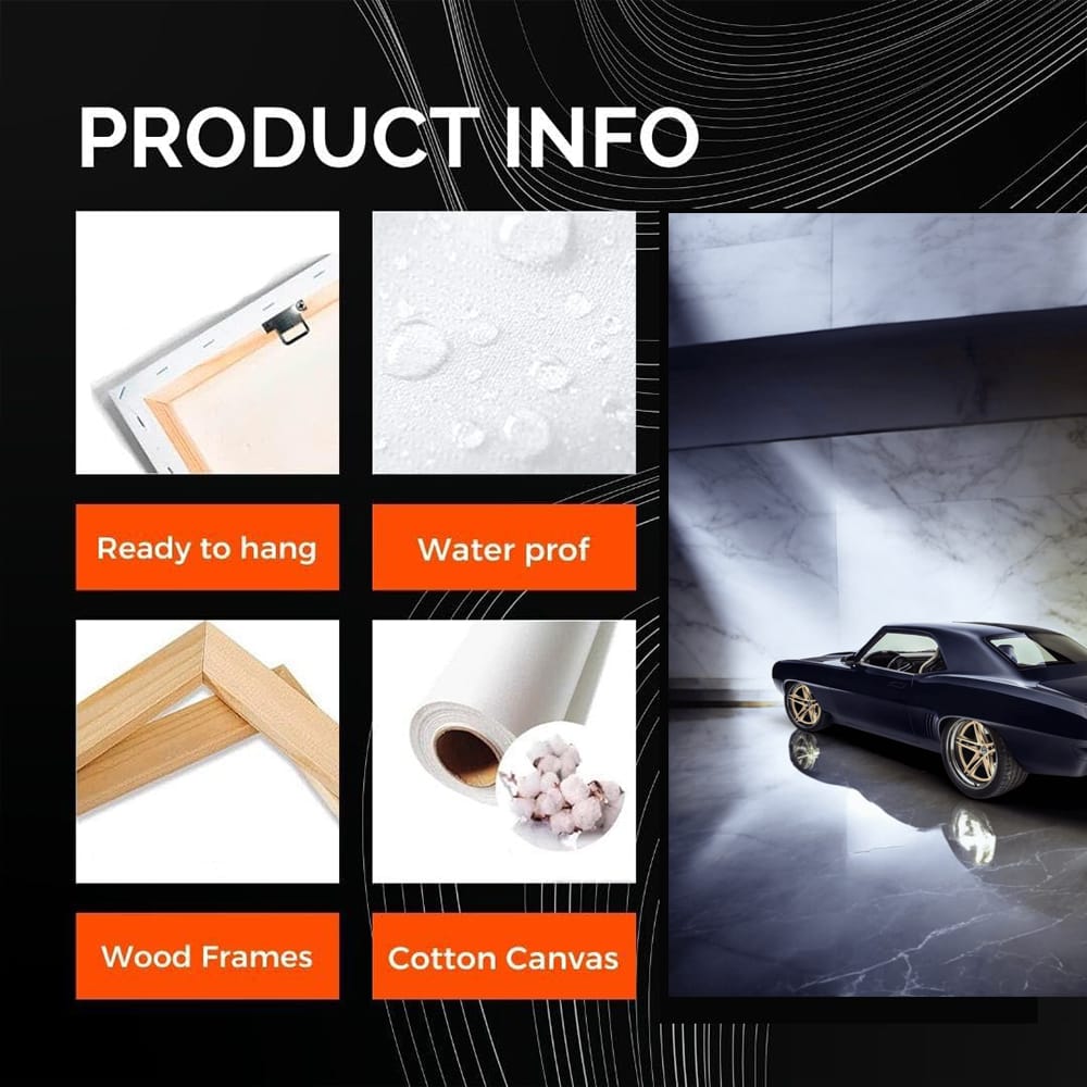 This poster of a '69 Chevy Camaro is pure adrenaline on the wall. Wall art for those who breathe gasoline and dream of roaring V8s. Camaro is a legend, and this painting is its anthem. For real brutal men who know a lot about cars. See more from the collection: Chevrolet Art