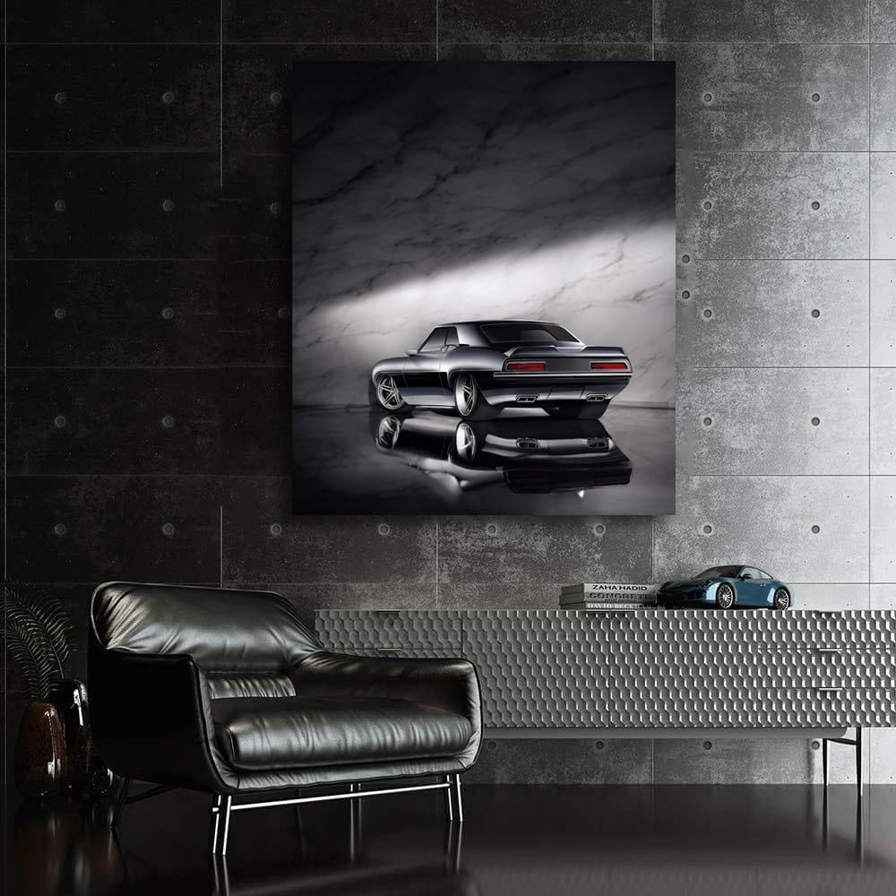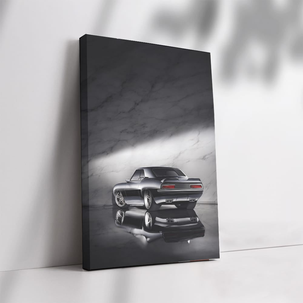 This cool wall art featuring a 1969 Chevrolet Camaro is a real find for car lovers! The poster, as if torn from the world of speed and adrenaline, will add a boldness to any room. This is not just a painting, it is a challenge to all boring walls! See more from the collection: Chevrolet Art