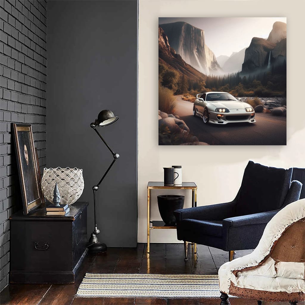 This poster is pure adrenaline on the wall! 1995 Toyota Supra MK IV in the valley - a JDM legend that tears asphalt and hearts. A picture for those who understand a lot about a turbocharged beast, which has a 2JZ under the hood. Wall art for true car fans who live life to the fullest! See more from the collection: Toyota Art