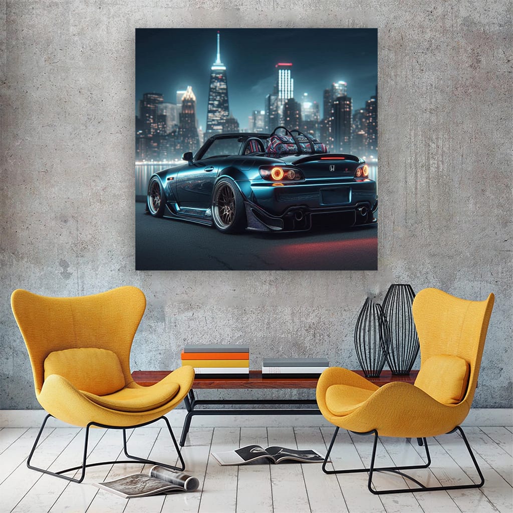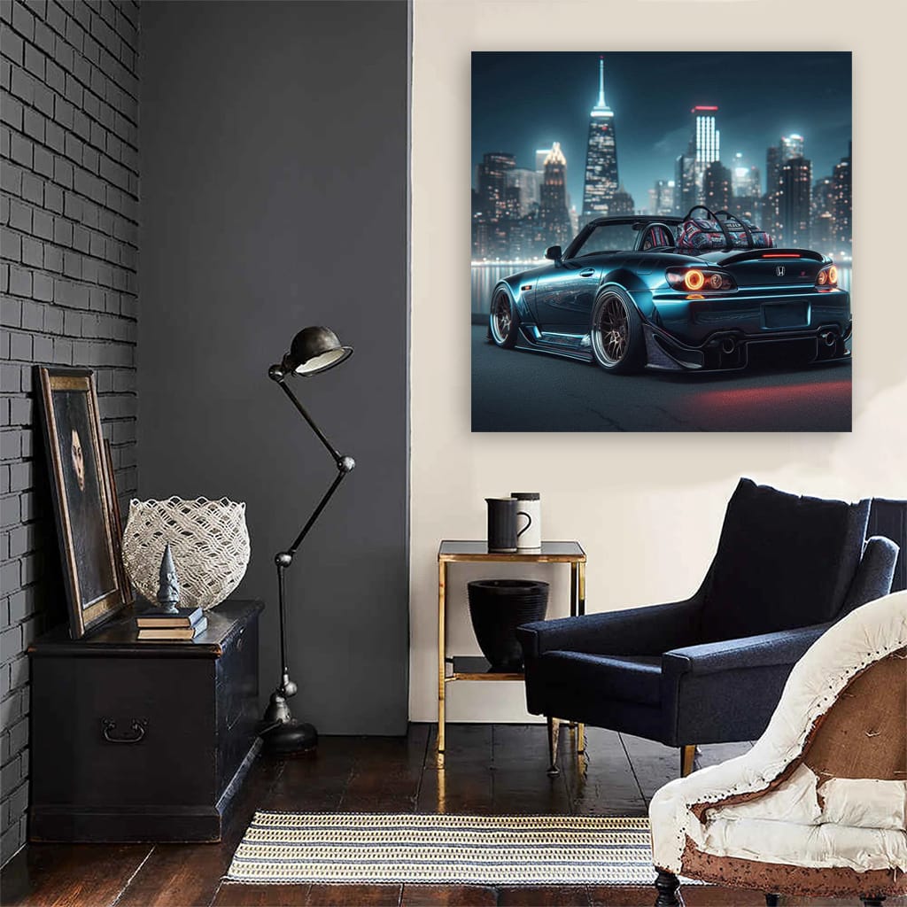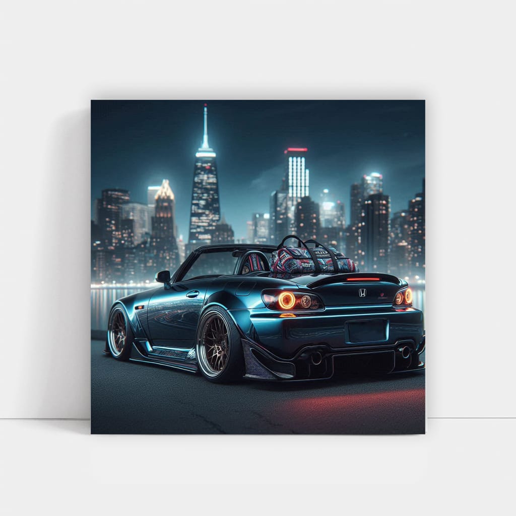 This painting is a true masterpiece for the guys who are into it. The 2001 Honda S2000 on the poster is not just a car, it's a JDM icon. Wall art of this caliber would decorate any garage den or man cave. Oil under the hood? No bro, oil on canvas! See more from the collection: Honda Art