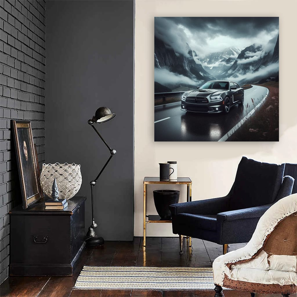 This is not just a poster, but a wall art for those who understand the power of cars. The painting shows a wild 2010 Dodge Charger SRT-8, ready to tear up the asphalt even on a cloudy day. This is not just a car, this is a beast with a sharp character. Hang this painting in your garage and feel like a real king of the road. See more from the collection: Dodge Art