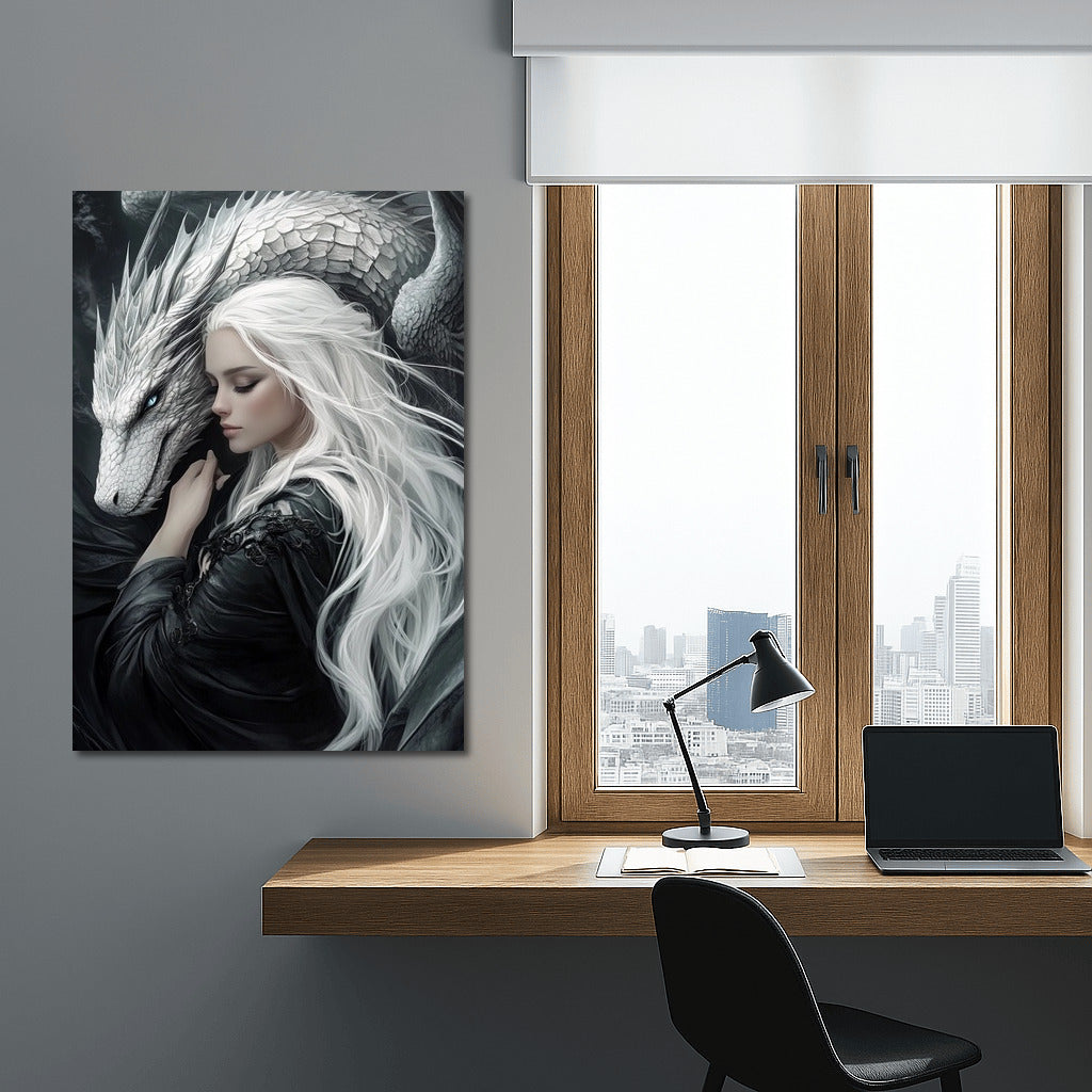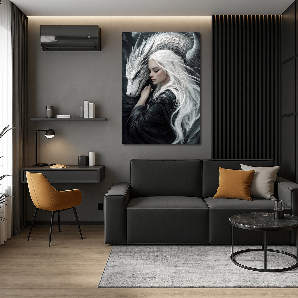 Exquisite wall art: a mysterious figure next to a majestic dragon. Create magic at home with this unique poster. See more from the collection: Mythology & Legends Art