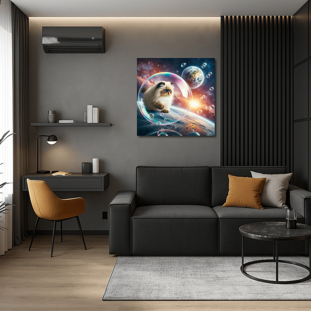 A Himalayan cat's space journey in a soap bubble among the stars Wall Art