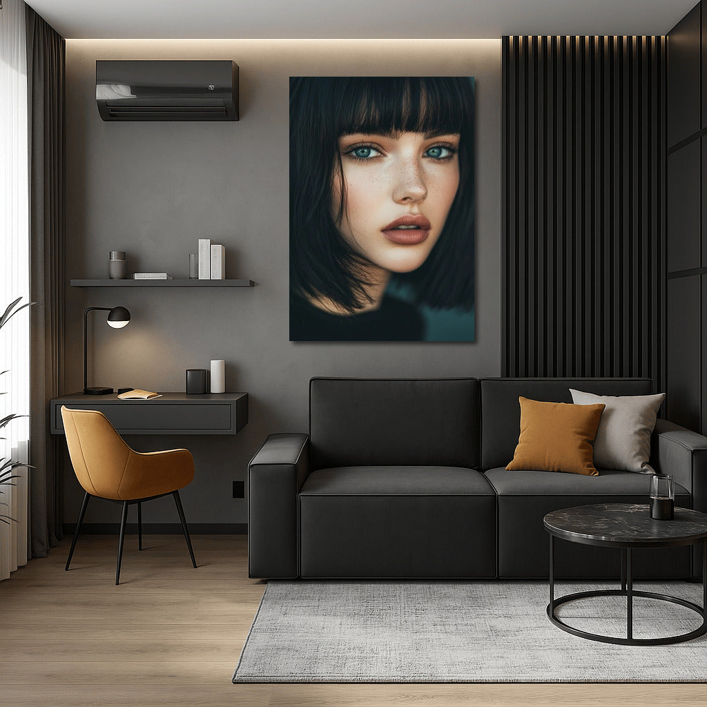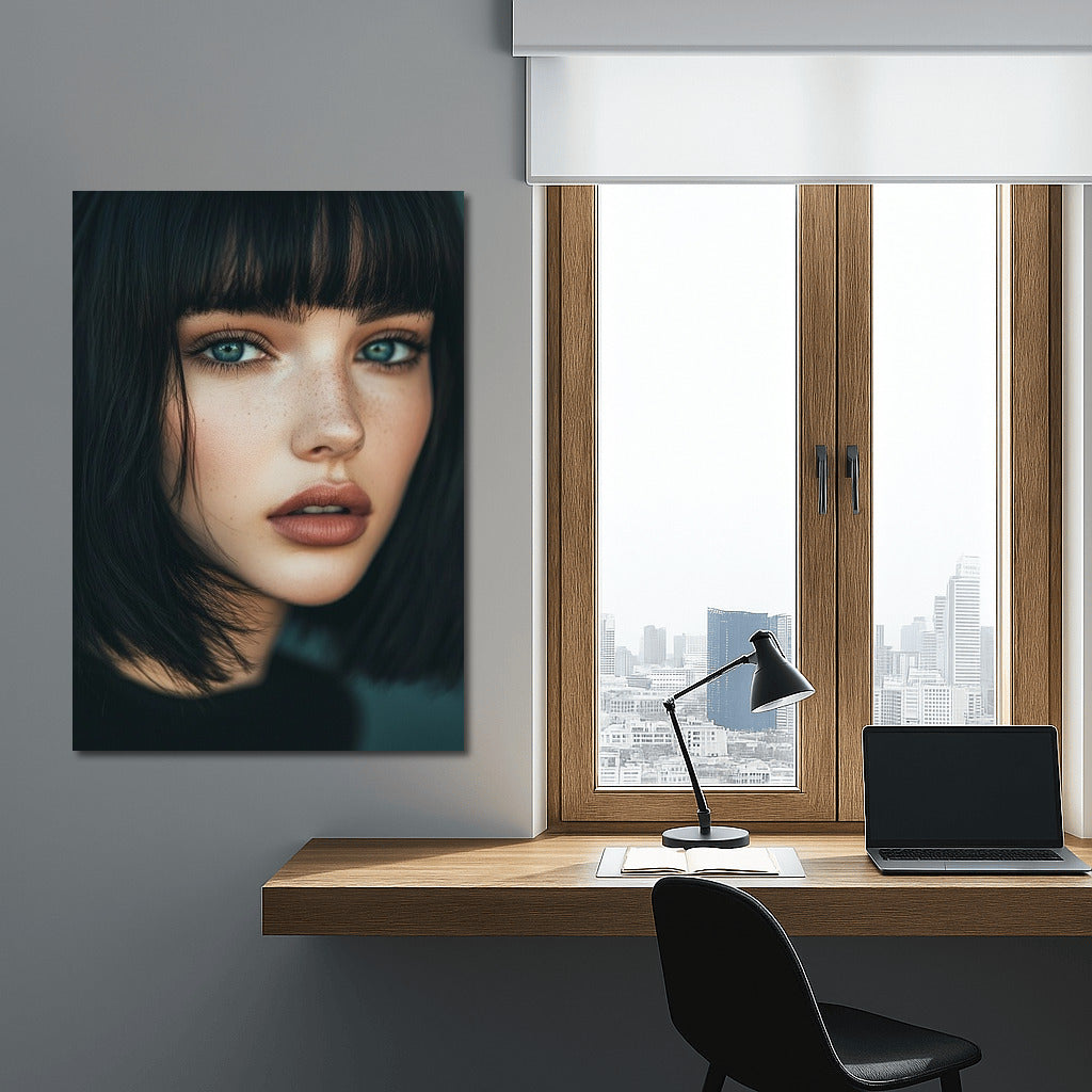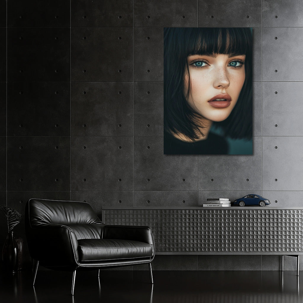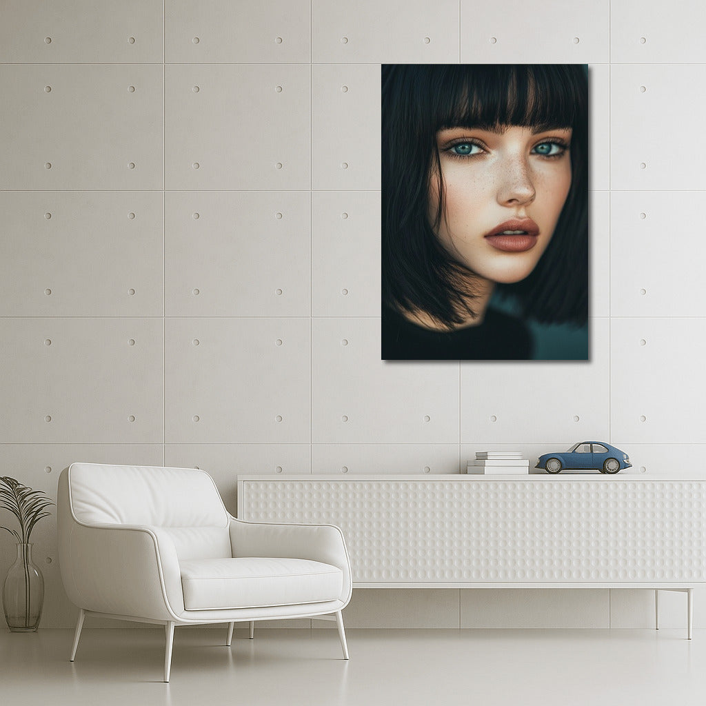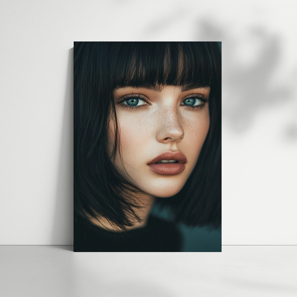 Capture a dreamy mood with this poster: magnetic gaze and gentle harmony create a unique wall art. See more from the collection: Wall Art with Women