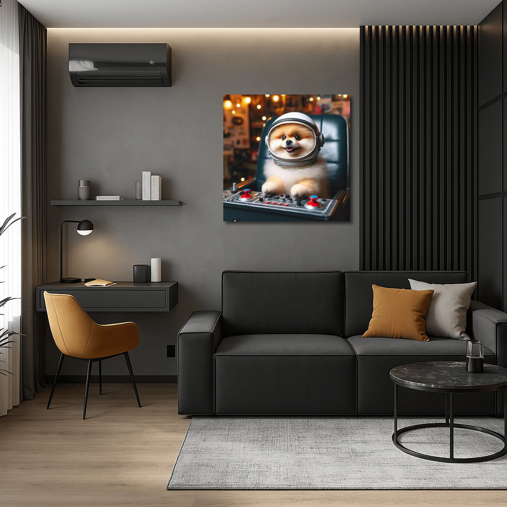 A furry pilot on an interstellar odyssey! Wall art featuring a Pomeranian piloting a spaceship. Perfect for the home! ? See more from the collection: Animals Art