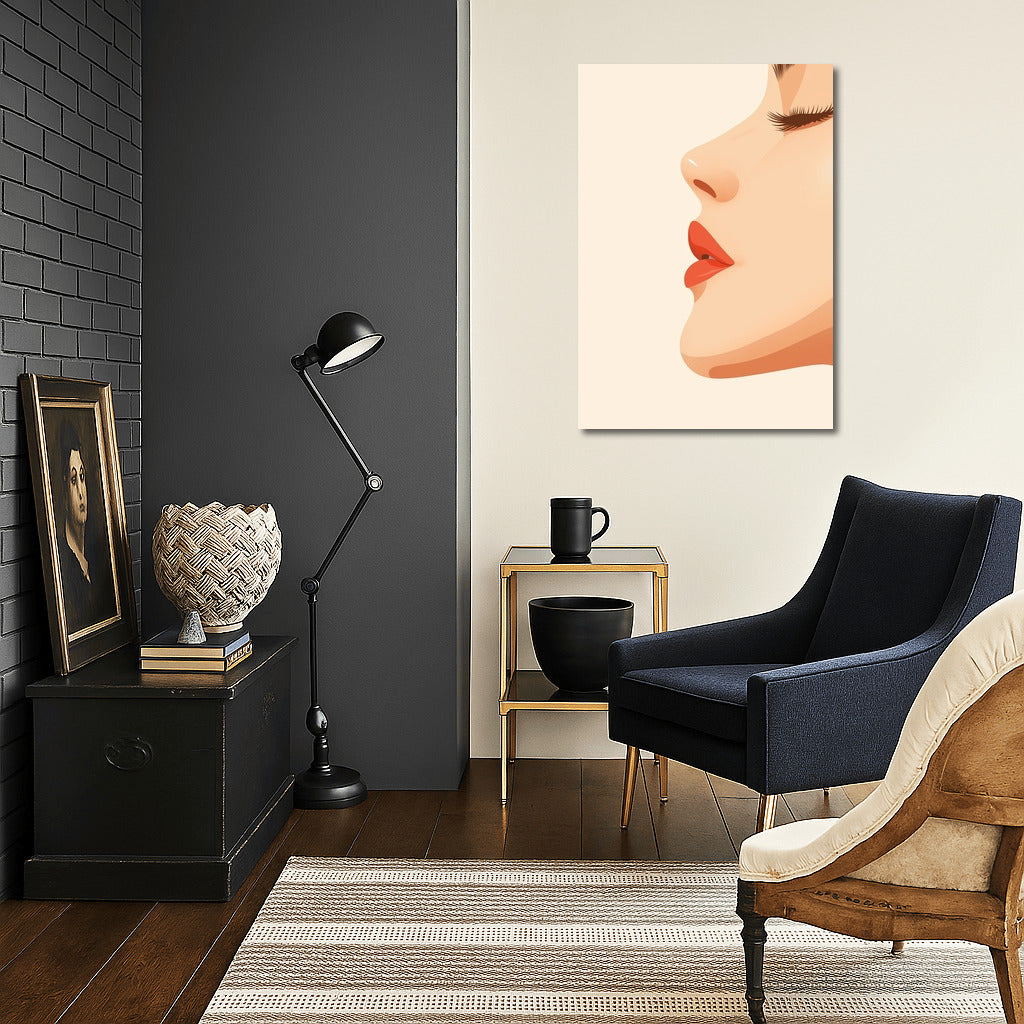 Minimalism aesthetics in a poster: gentle profile, closed eyes, dreams. Wall art for your inspiration. See more from the collection: Mixed Wall Art
