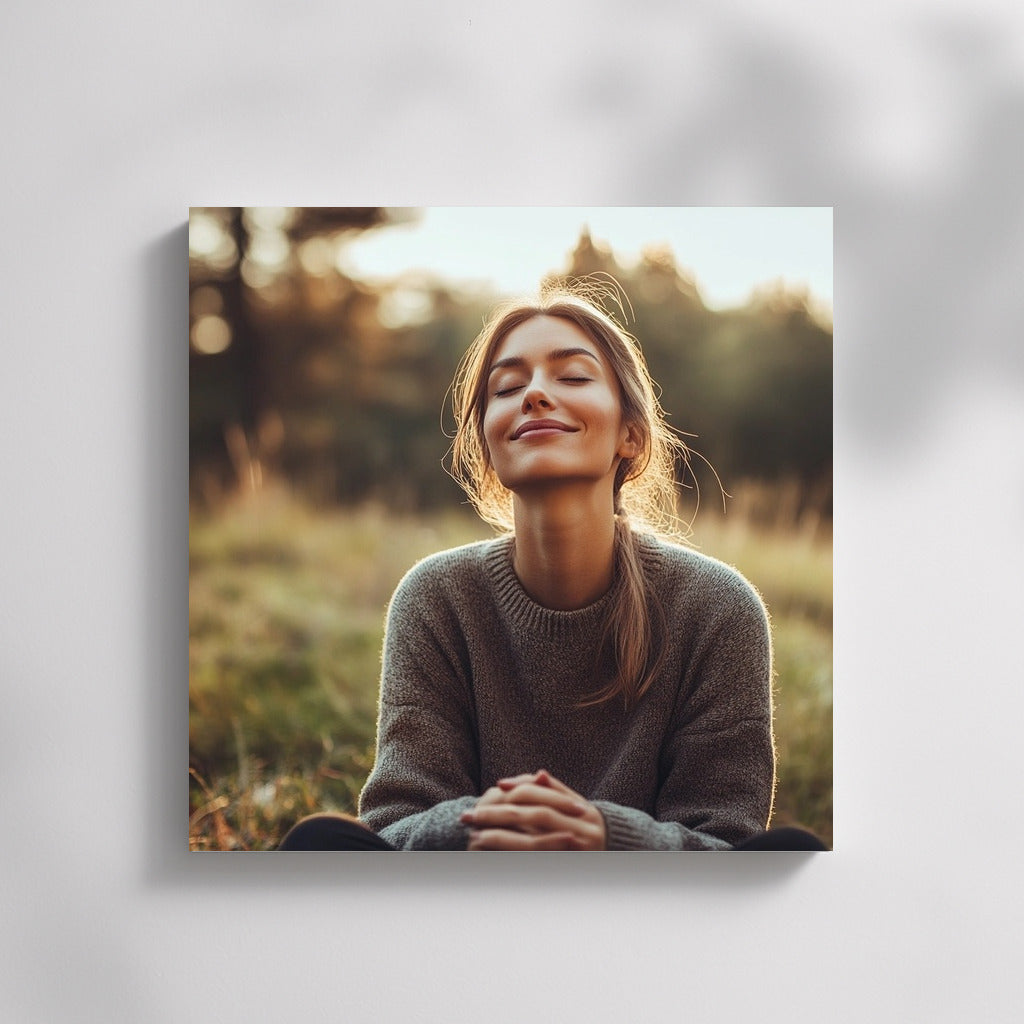 Radiating tranquility, this painting is designed to bring coziness and harmony to your home. Ideal wall art for meditation. See more from the collection: Wall Art with Women