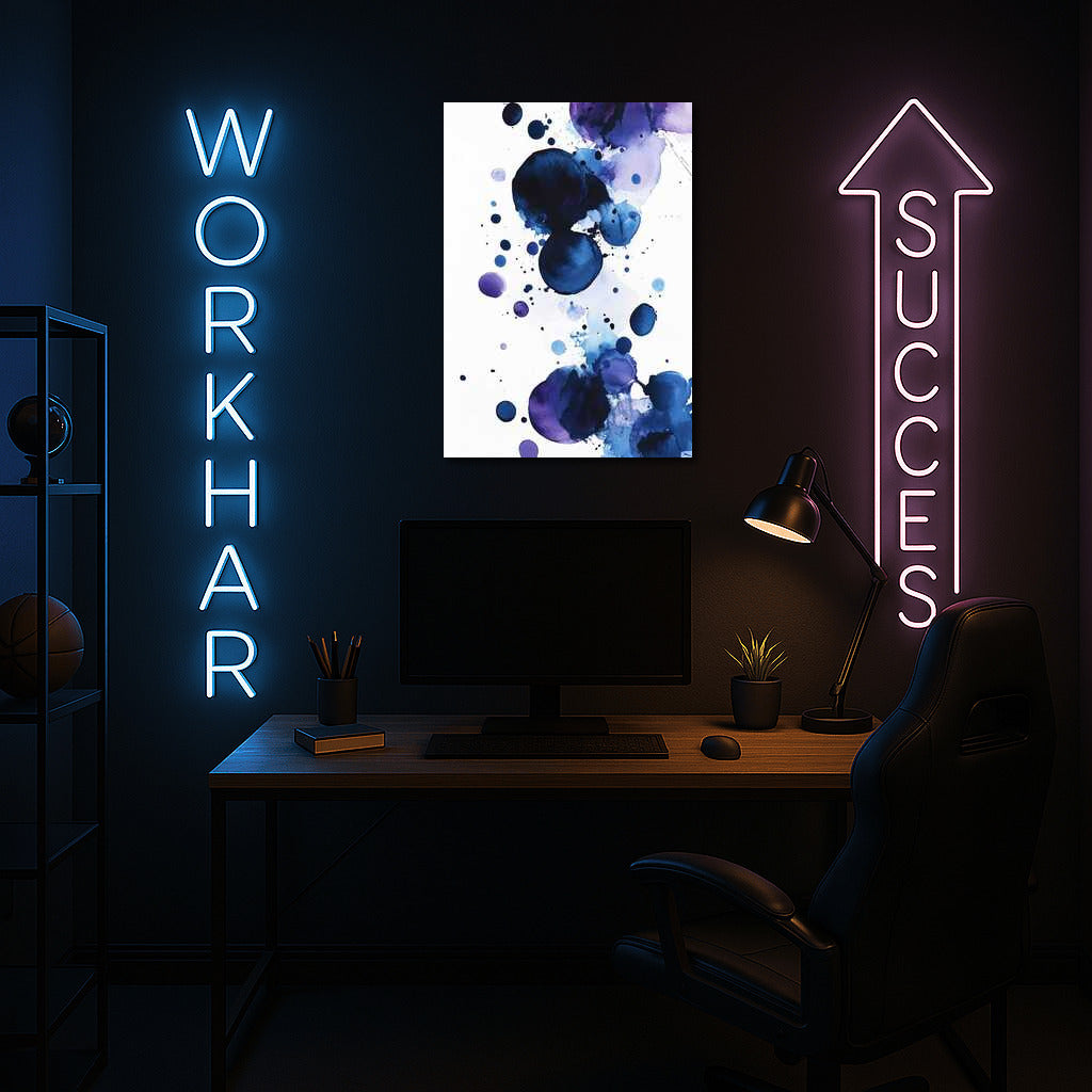 Dive into an abstract world of circles and splashes with this wall art. The depth of blue captivates and inspires. See more from the collection: Abstract Art