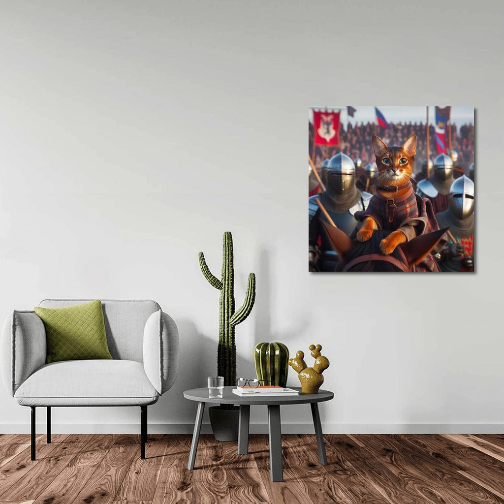Poster of an Abyssinian cat in a medieval tournament. Wall art where knightly courage meets feline grace. See more from the collection: Abyssinian Cat Art