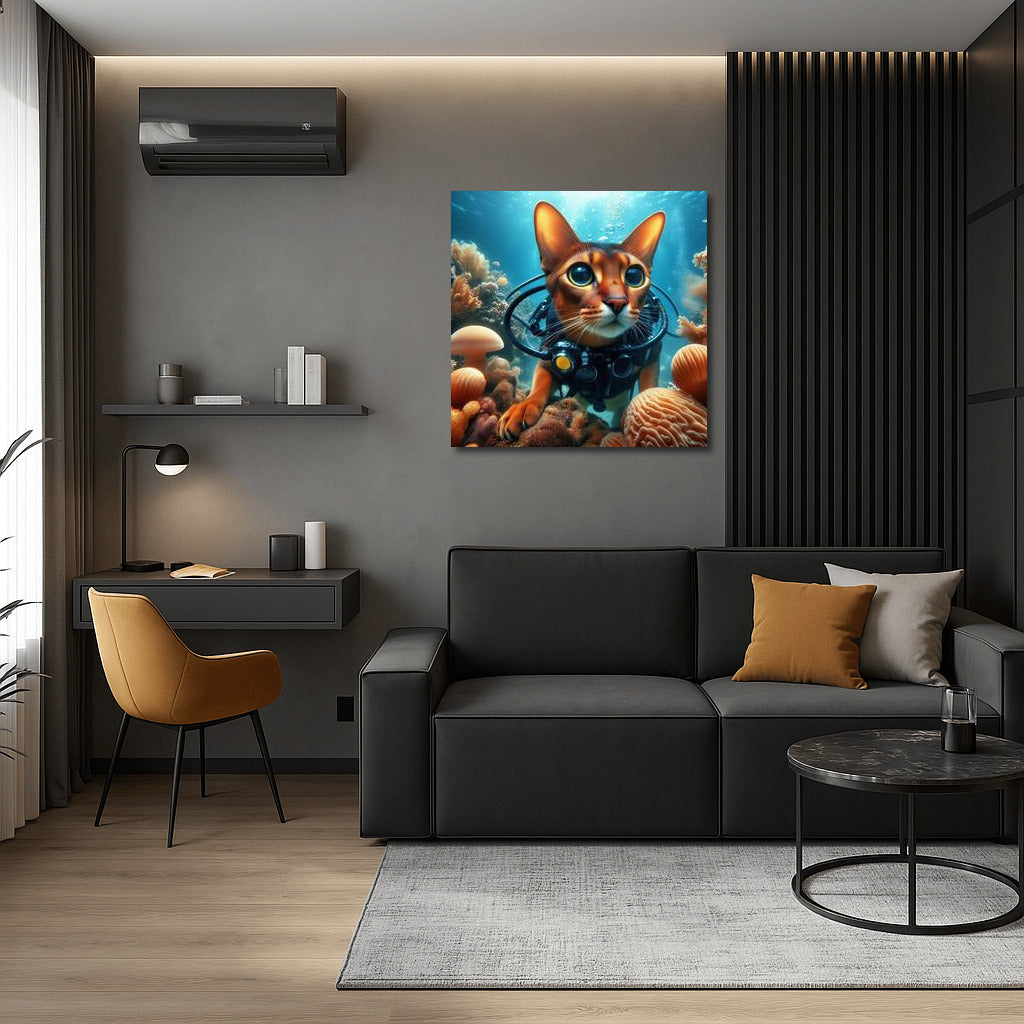 Abyssinian Cat on Underwater Adventure: Exploring the Deep Sea Wall Art
