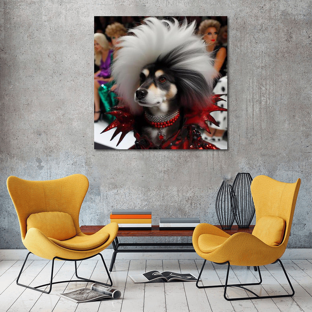 Dive into a world of fashion and fantasy with this poster! Adorable Disney and Cruella style dog image comes to life on the walls. See more from the collection: Animals Art