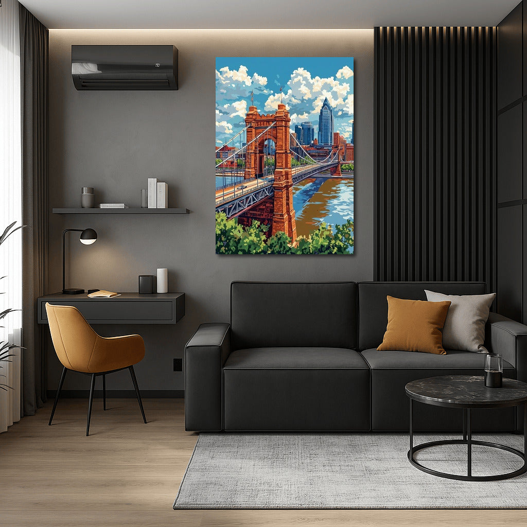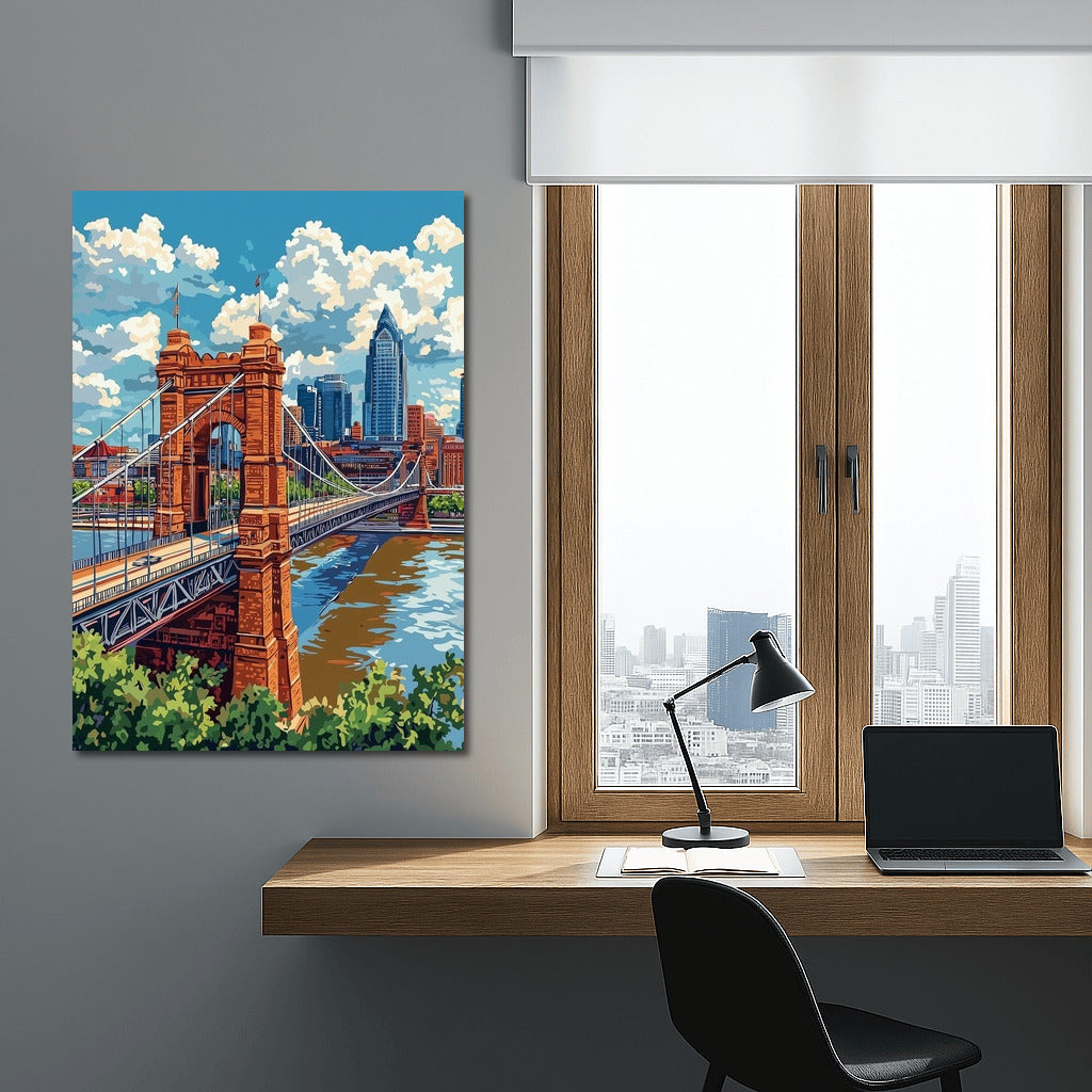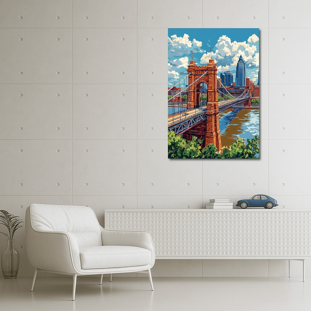 Bridge in the Sky: This vibrant poster will add a city and free-spirited feel to your space! Perfect wall art for inspiration. See more from the collection: Cityscapes & Skylines Art