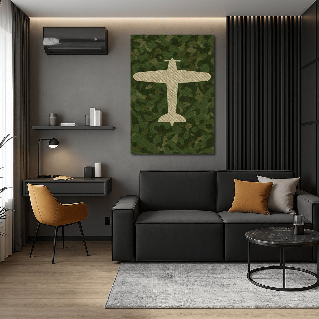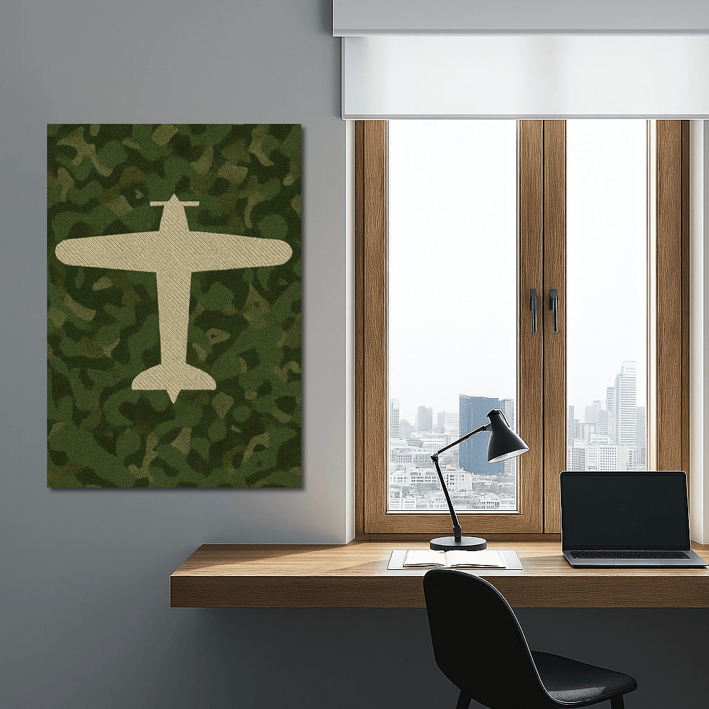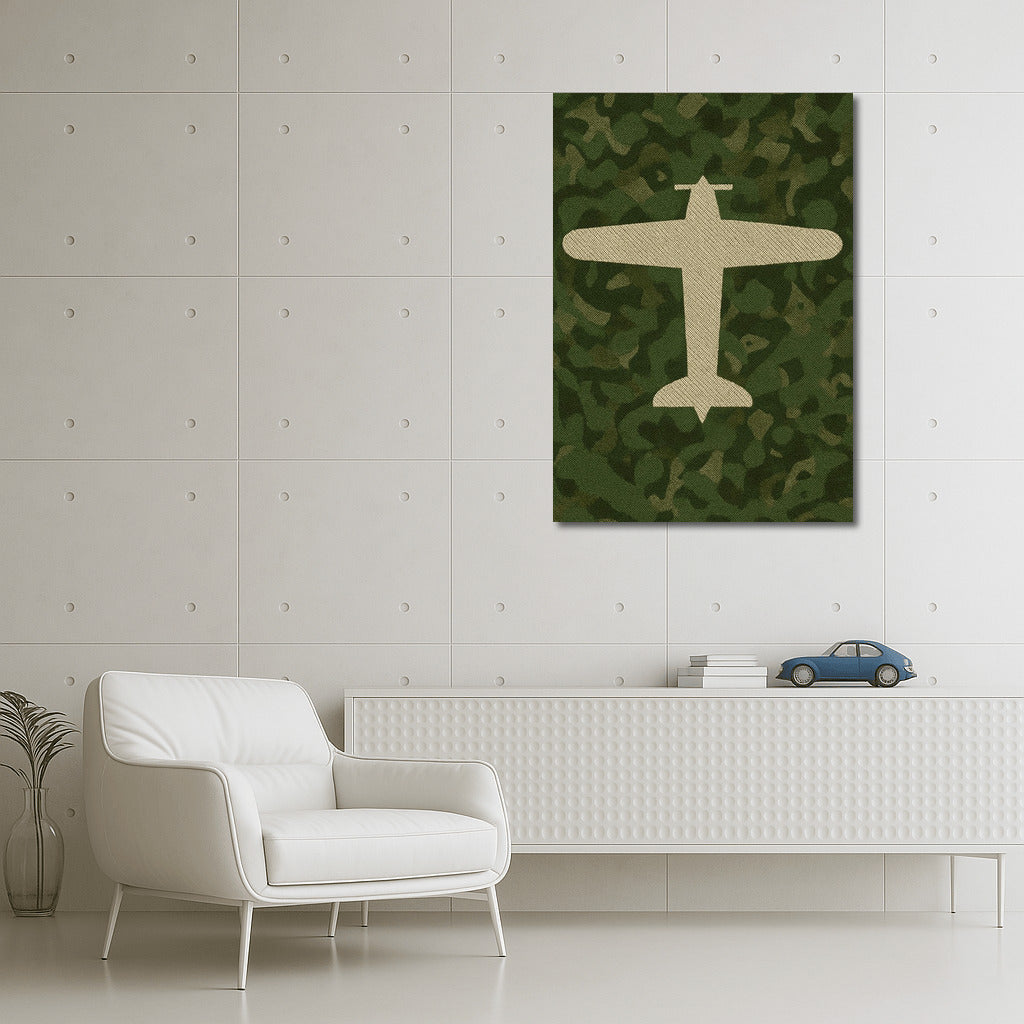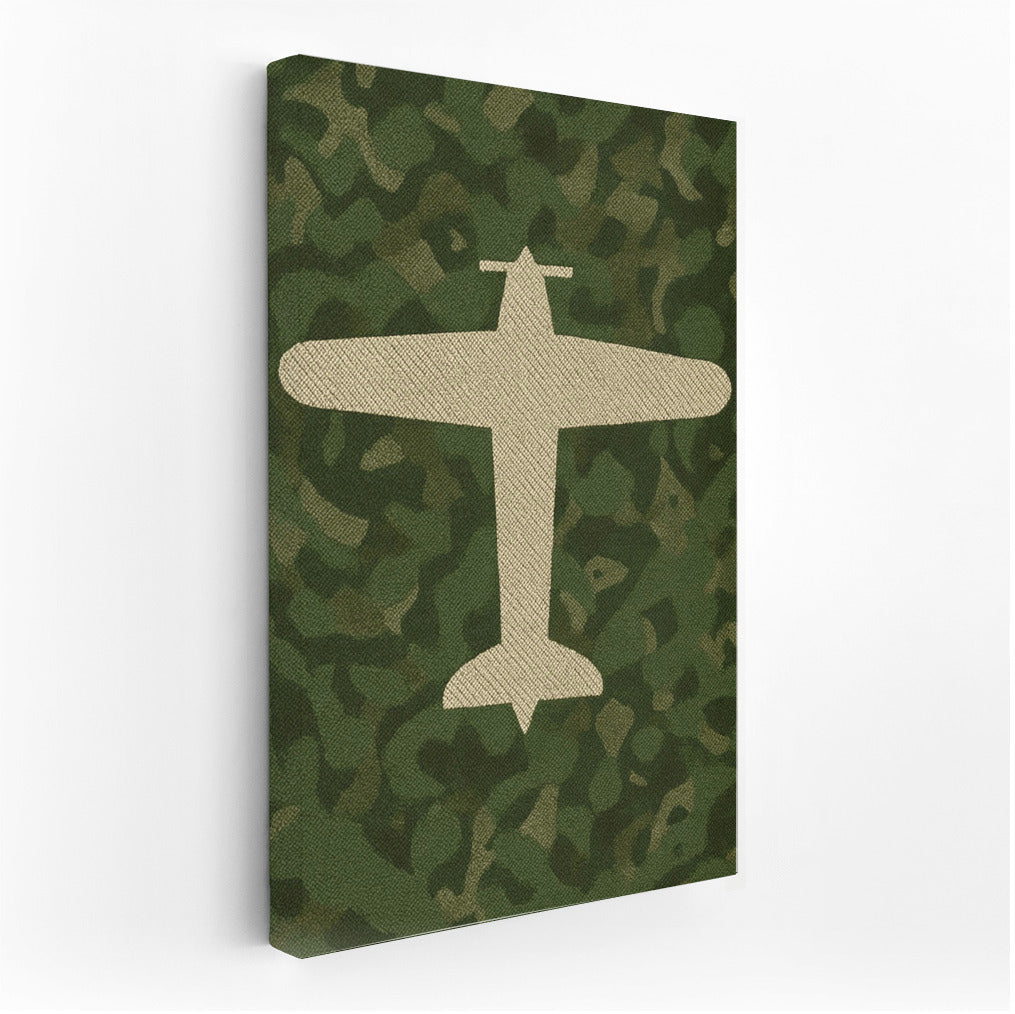 Airplane silhouette on camouflage background. This painting is a tribute to Military Veterans. Wall art in your home. See more from the collection: Military & Veterans Art