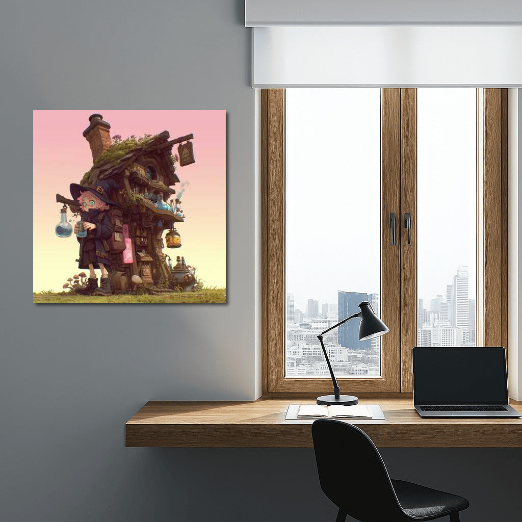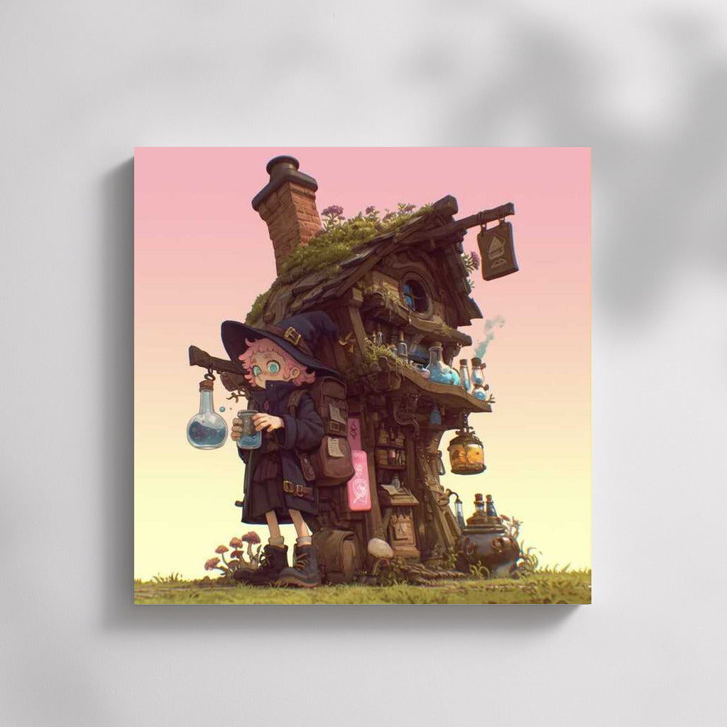 Dive into the world of Fantasy with this poster: Mysterious house and alchemy create a magical atmosphere on your wall art. See more from the collection: Fantasy Art