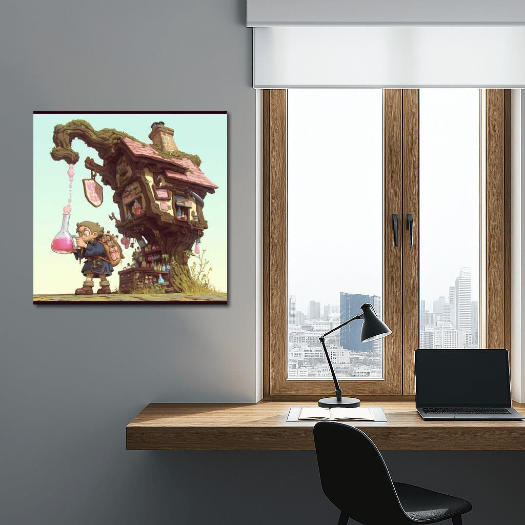 A magical poster brings to life a fantastical home where an alchemist is immersed in the mysteries of nature. Wall art of dreams and mysteries. See more from the collection: Fantasy Art