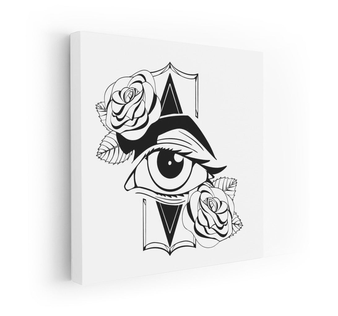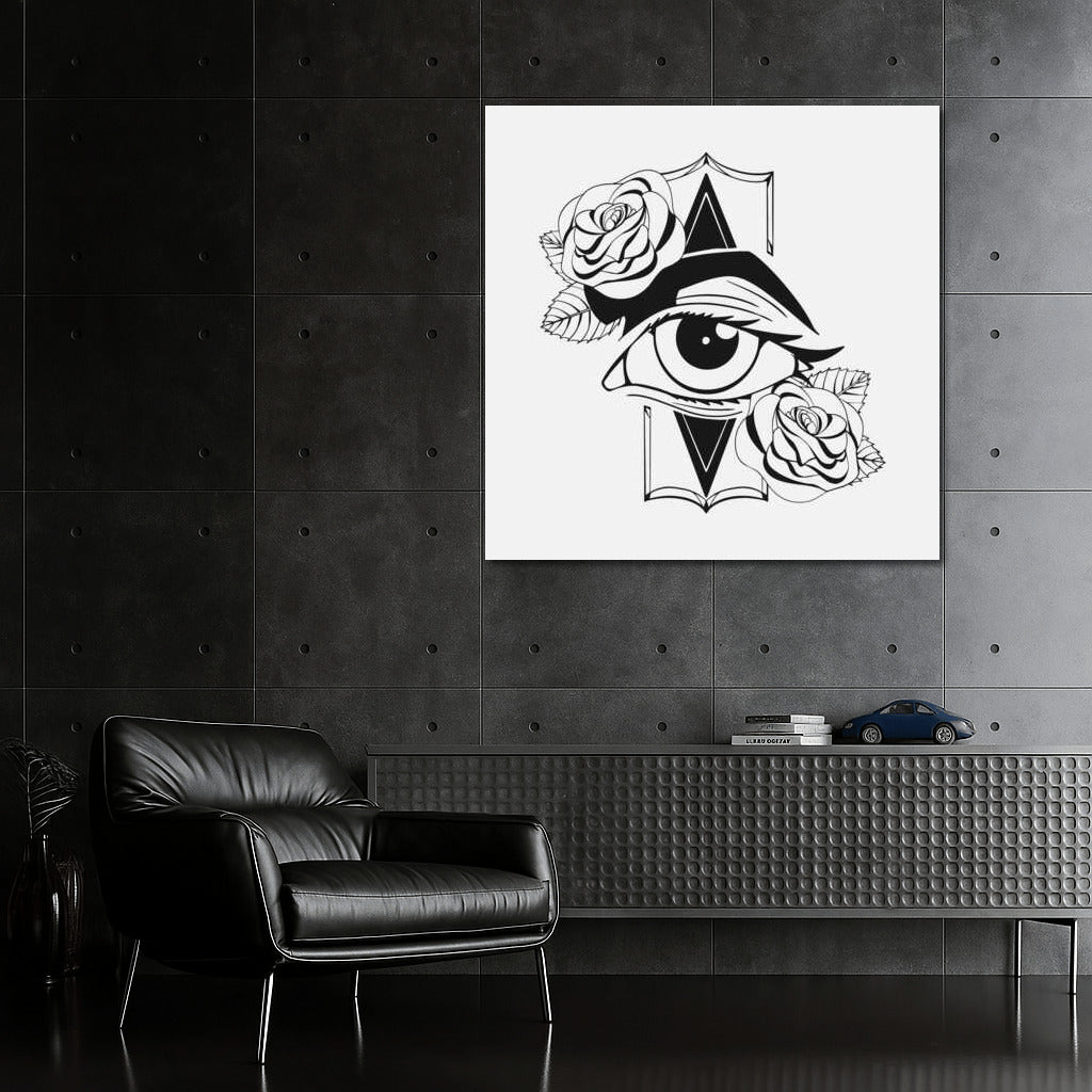 All Seeing Eye and Roses Tattoo: Mystical Charm Wall Art