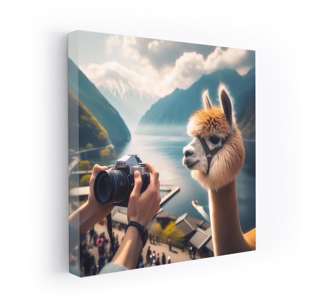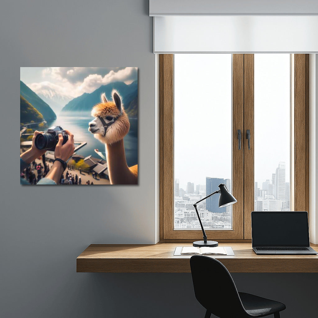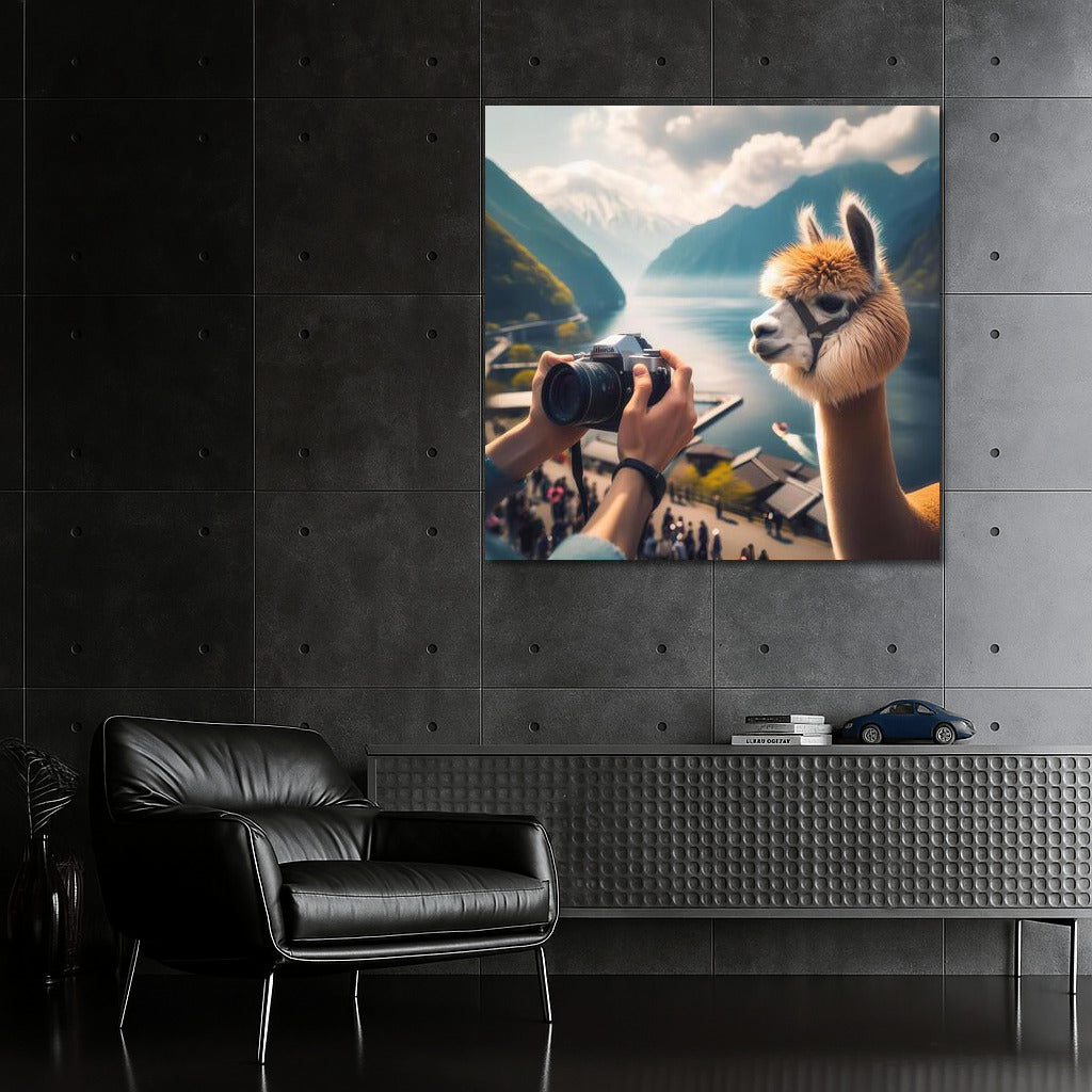 Alpaca with mountain lake in the background is the perfect wall art for nature lovers and tranquility lovers. A poster that inspires. See more from the collection: Animals Art