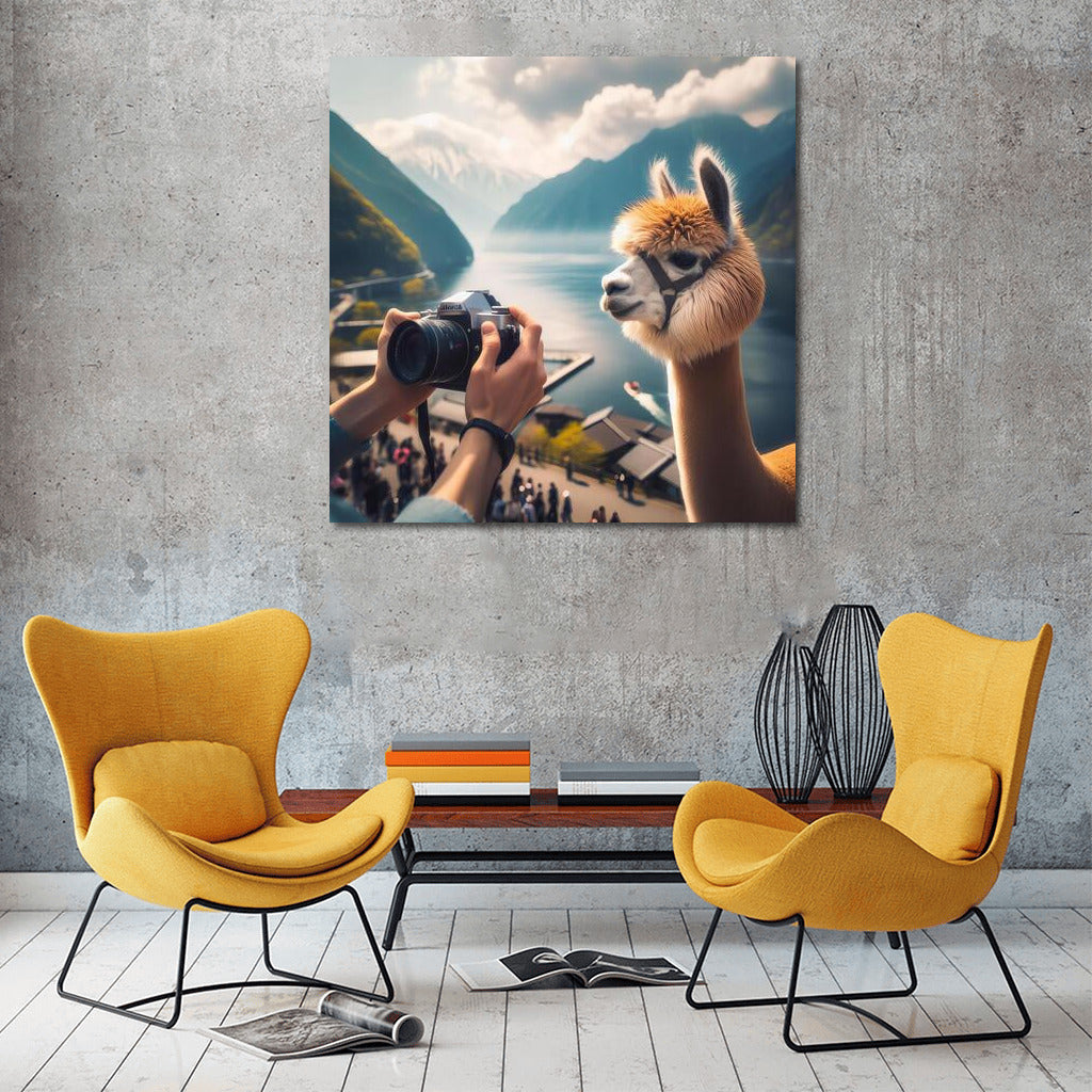 Alpaca at a Mountain Lake: Natural Idyll Wall Art