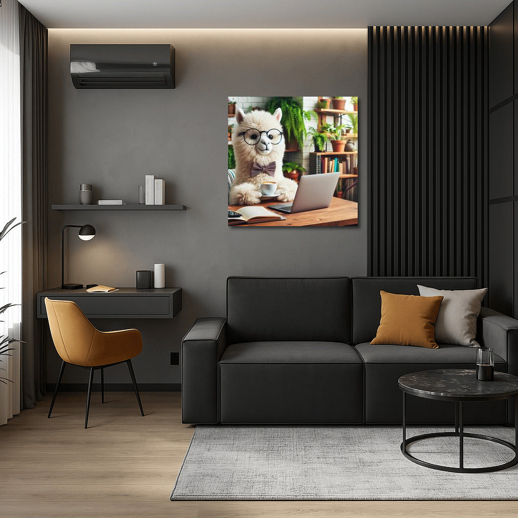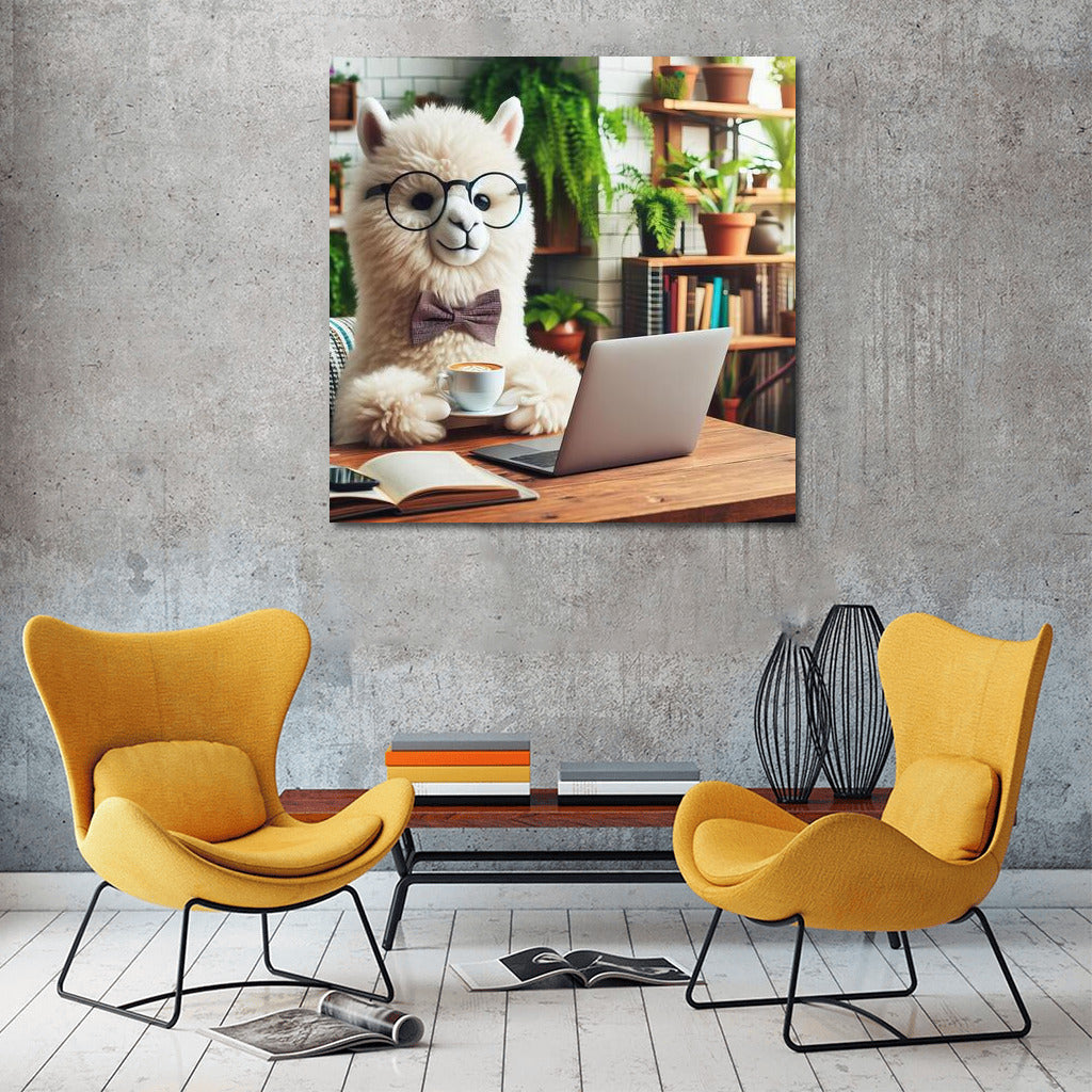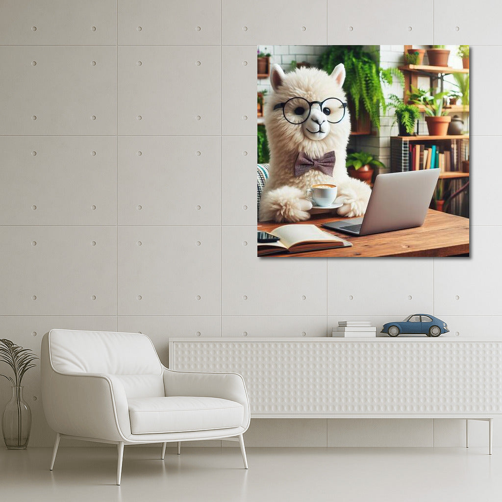 Alpaca Coffee Break: Working on a Laptop in a Cozy Cafe Wall Art
