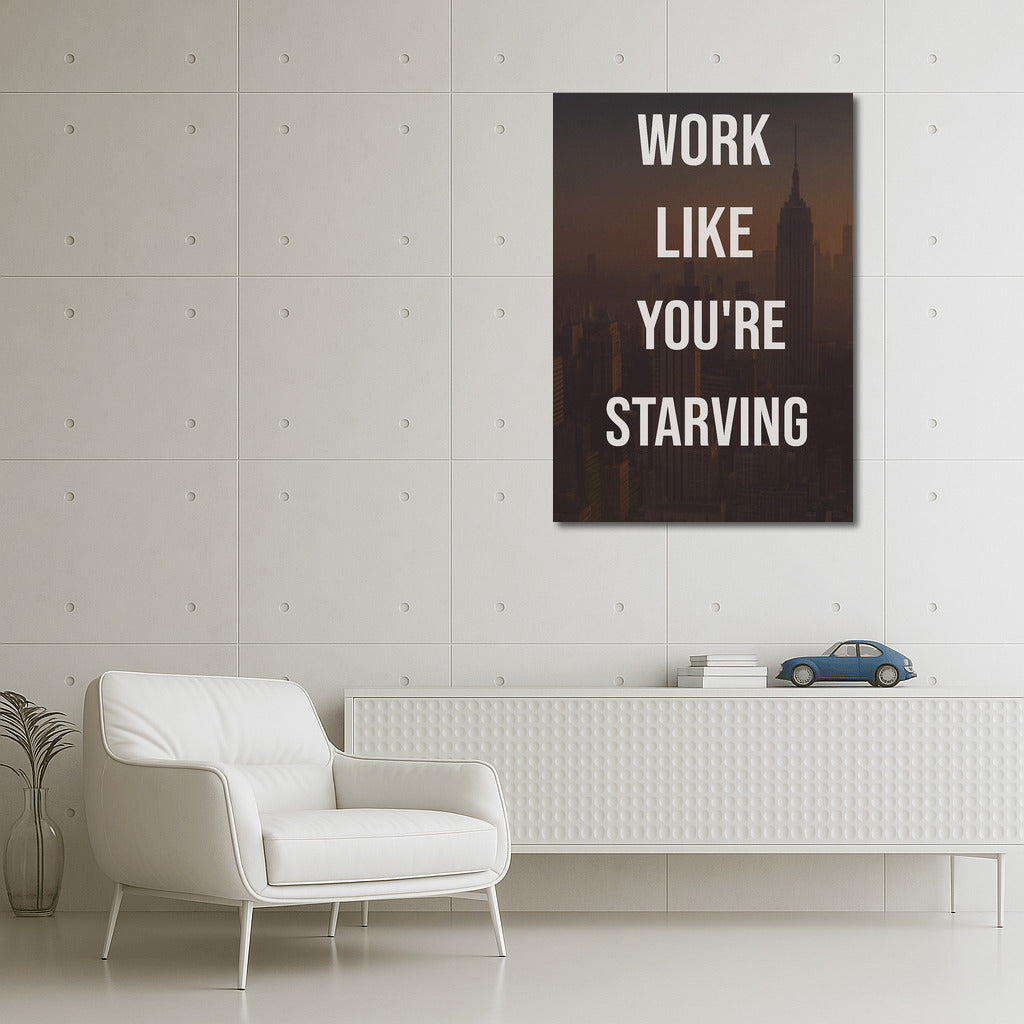 Wall art with a motivational phrase: awaken your ambition and perseverance, work with hunger in your heart and desire in your soul. See more from the collection: Dreams & Vision Quotes Art