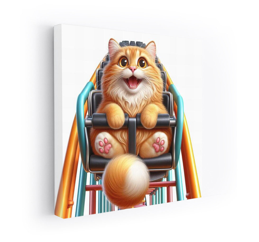 Fluffy adventure: poster Cat in the amusement park 3. Charge the walls with positive and bright emotions! See more from the collection: Animals Art