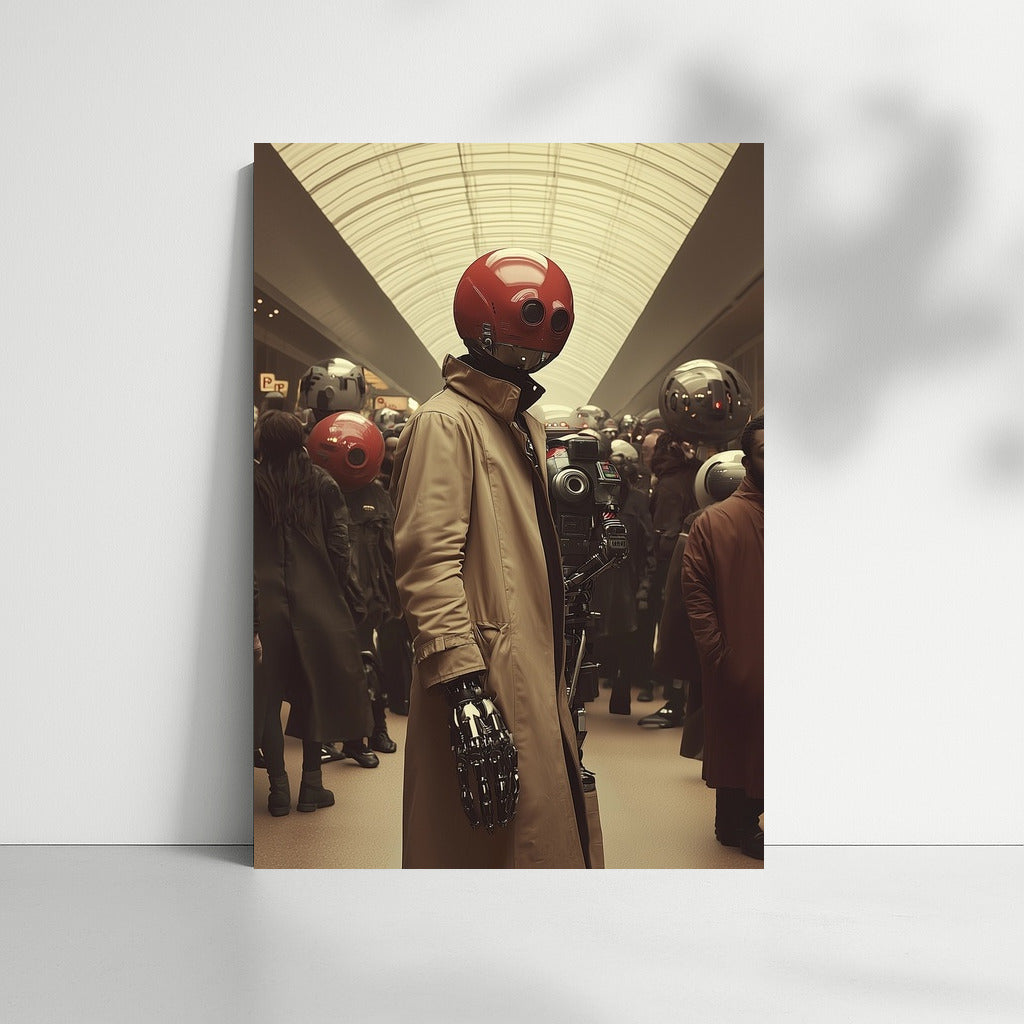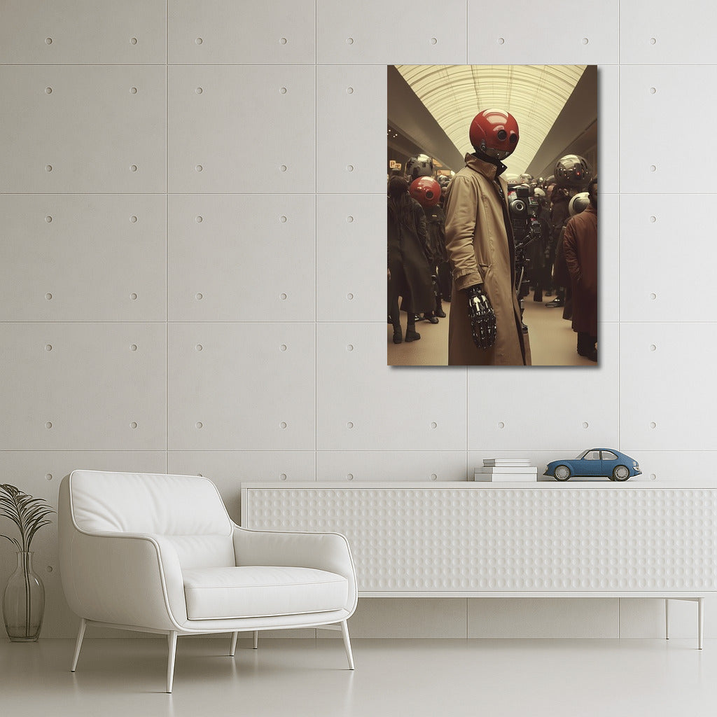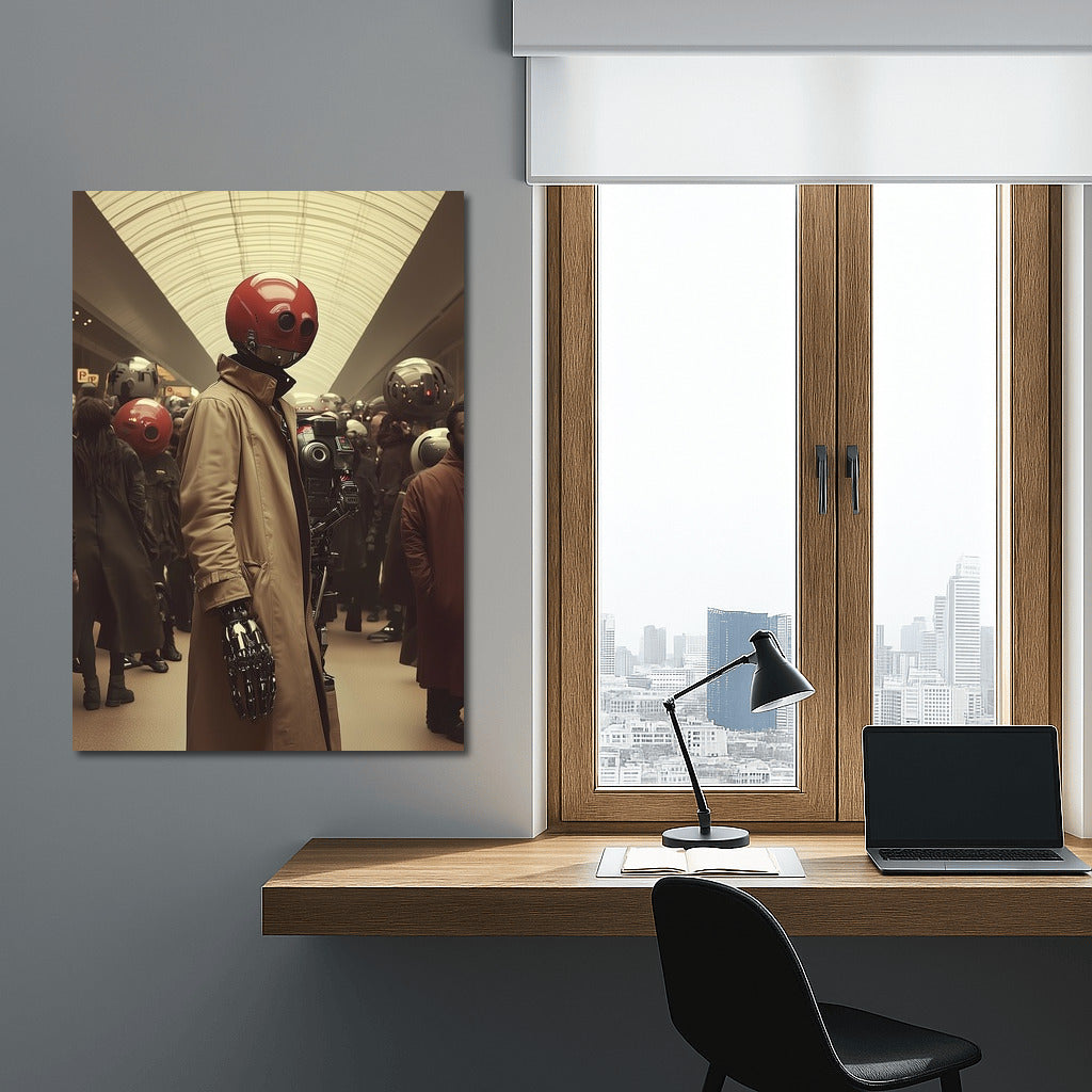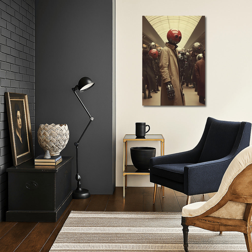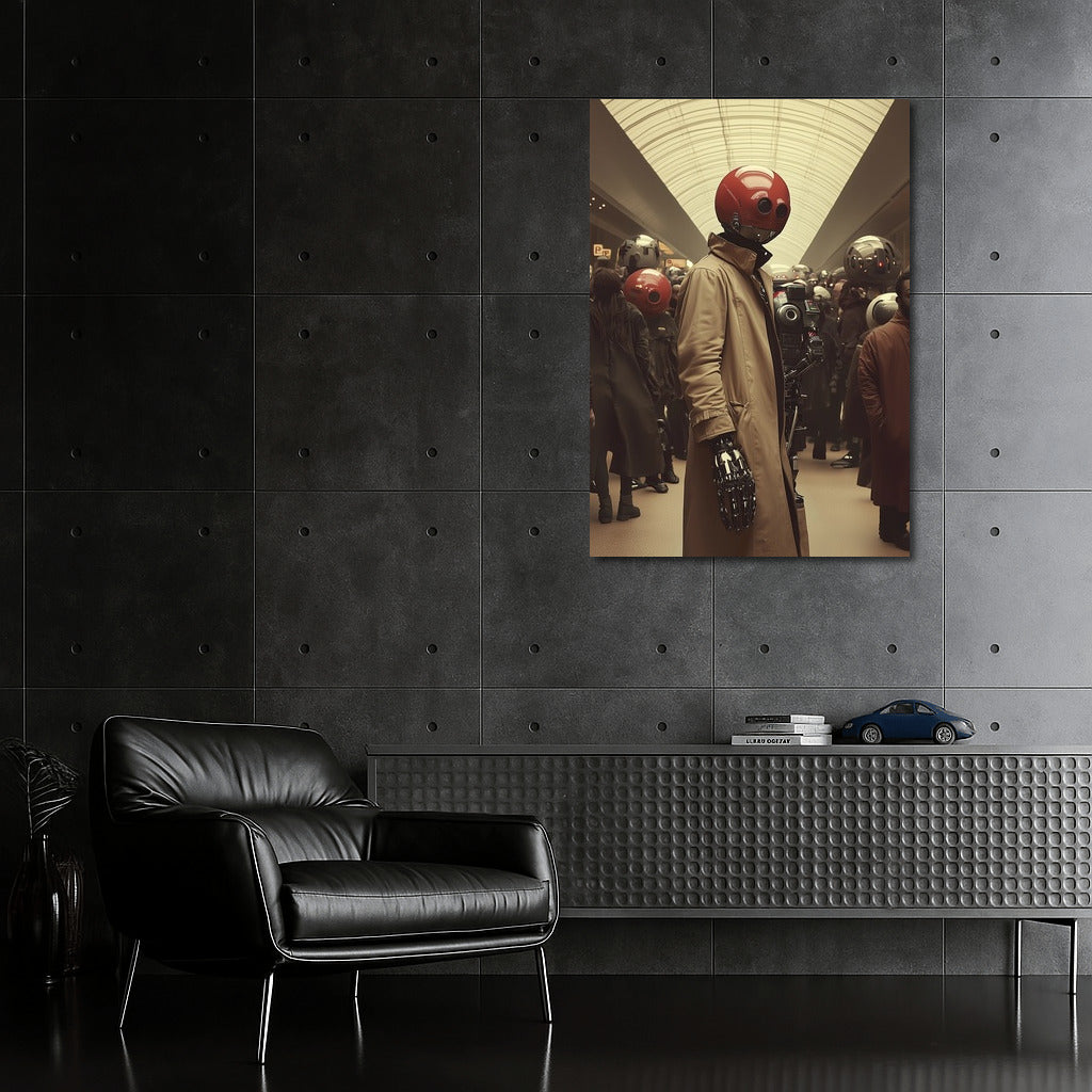 Futuristic painting: stylish androids in the center of the metropolis. Liven up your walls with unique wall art of the future! See more from the collection: Mixed Wall Art