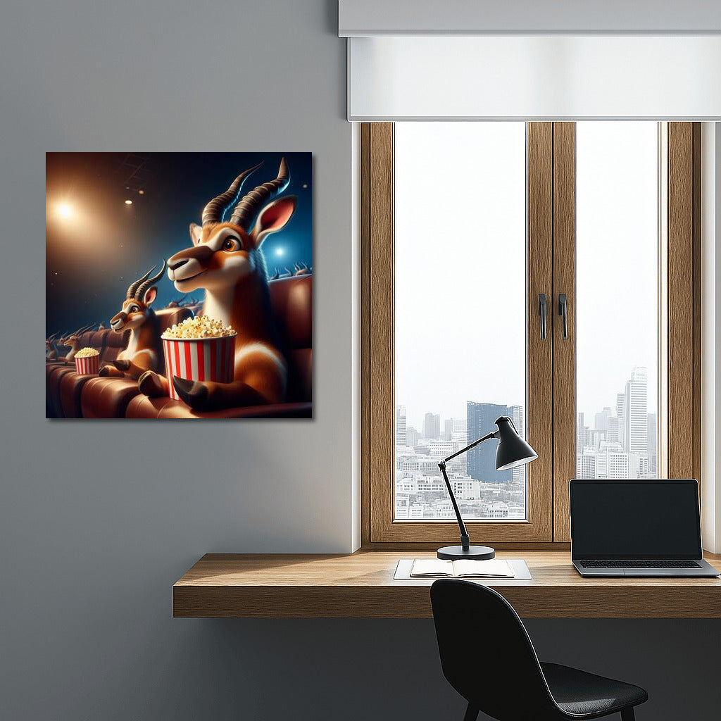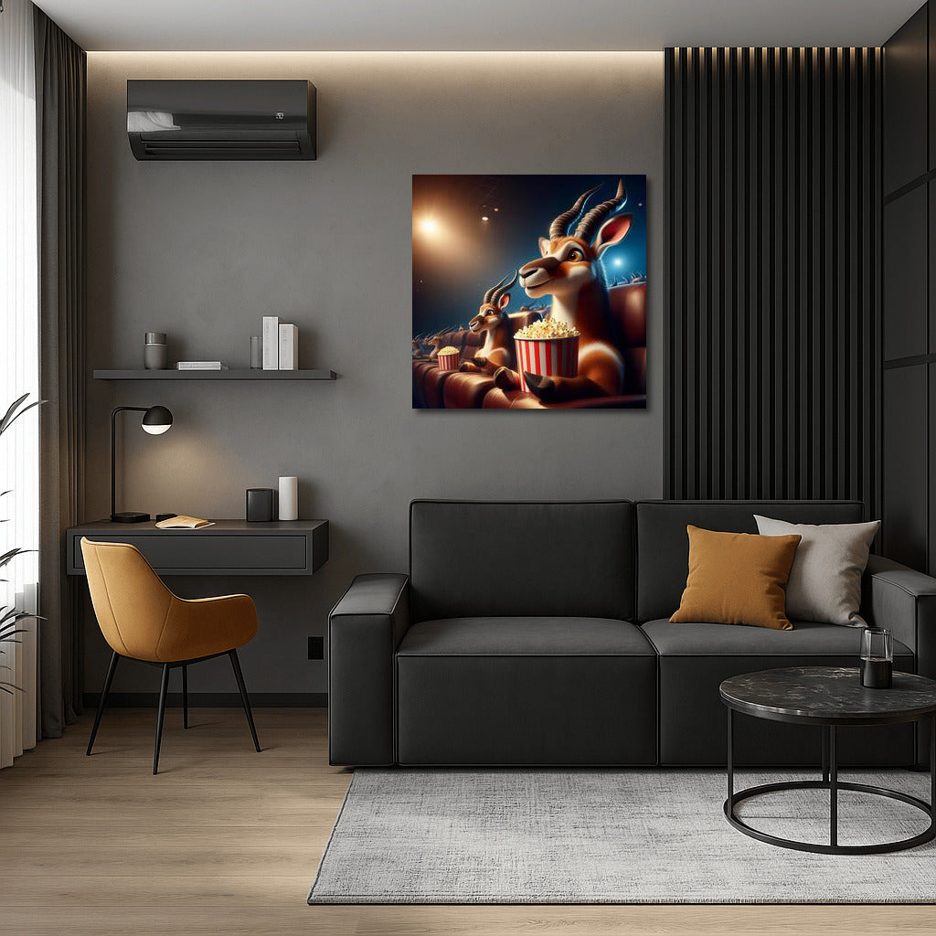 Antelope in the cinema: popcorn in the hooves, magic on the screen. Add a playful accent to your wall art! See more from the collection: Animals Art