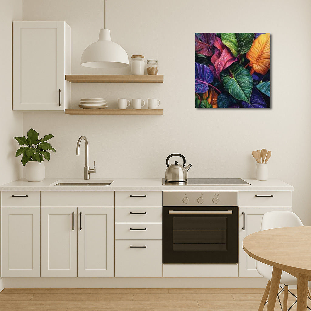 Dive into a tropical paradise with this poster! Exotic leaves and anthurium flowers will liven up any space. Wall art. See more from the collection: Flowers Art