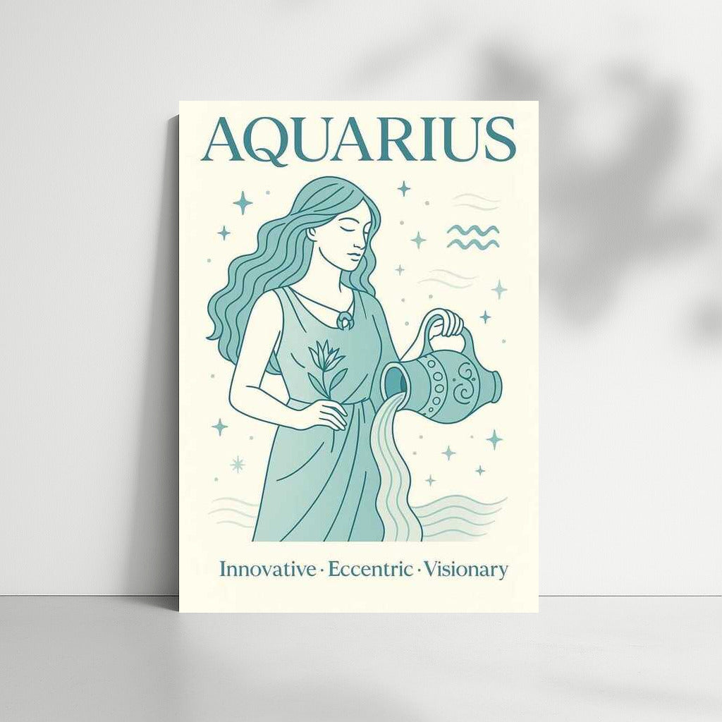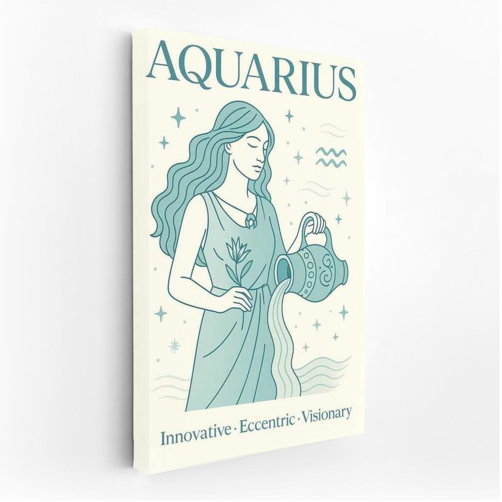 Inspirational Aquarius Zodiac Sign Painting: Grace and flow of ideas in your space. Perfect wall art. See more from the collection: Aquarius Zodiac Sign Art