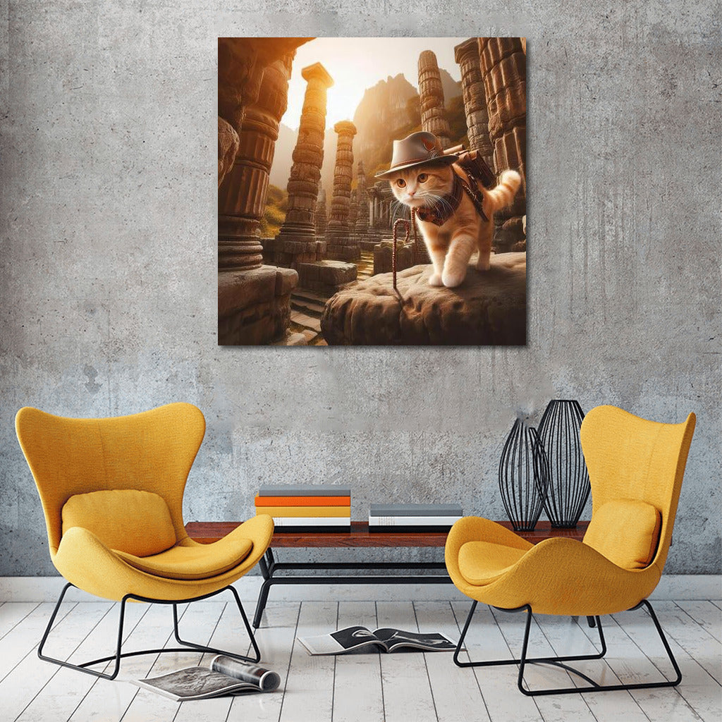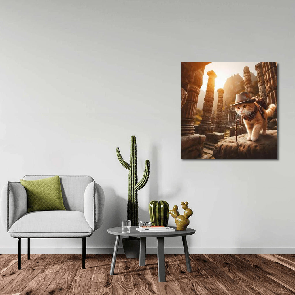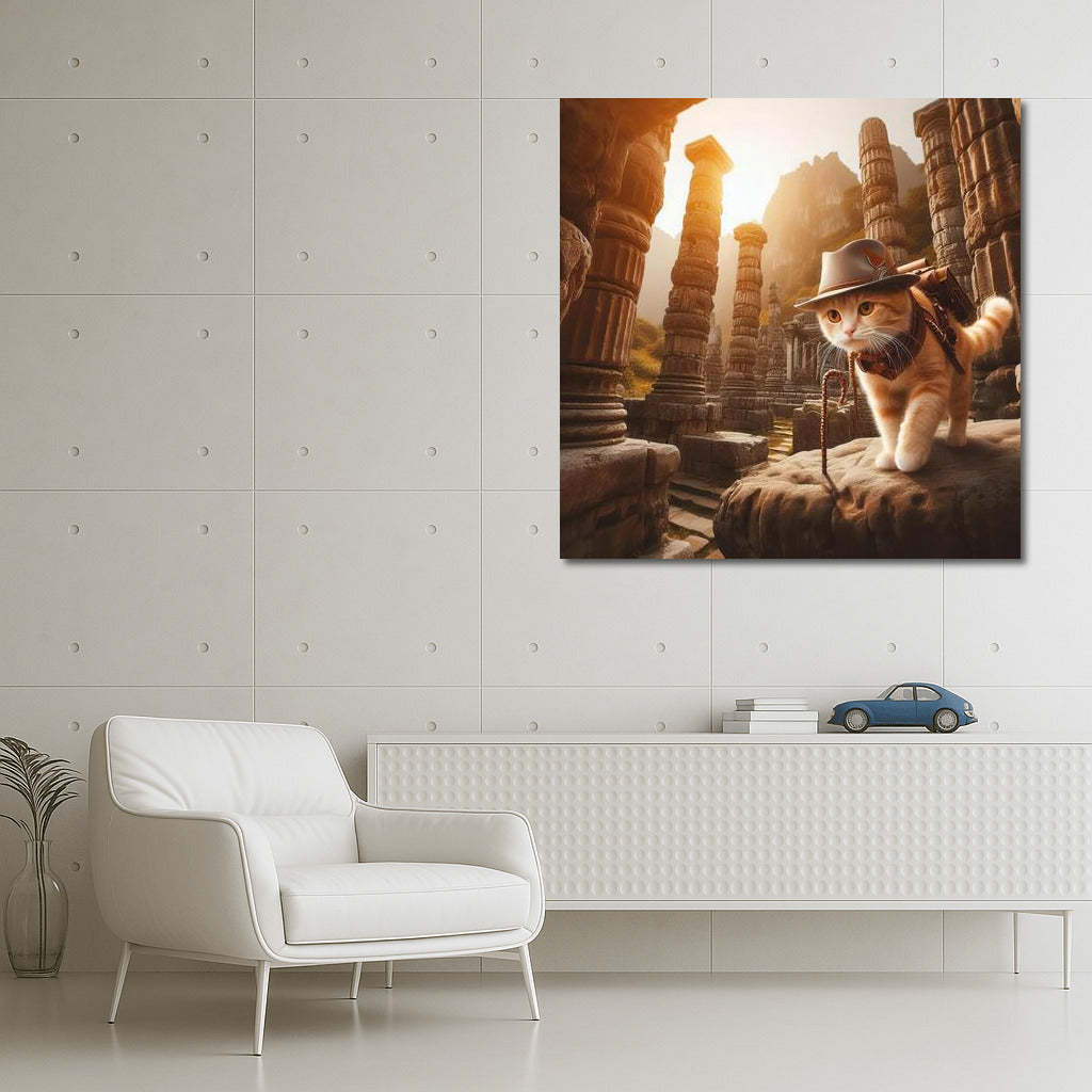 Archaeologist Cat: Adventures in Ancient Ruins in the Style of Indiana Jones Wall Art