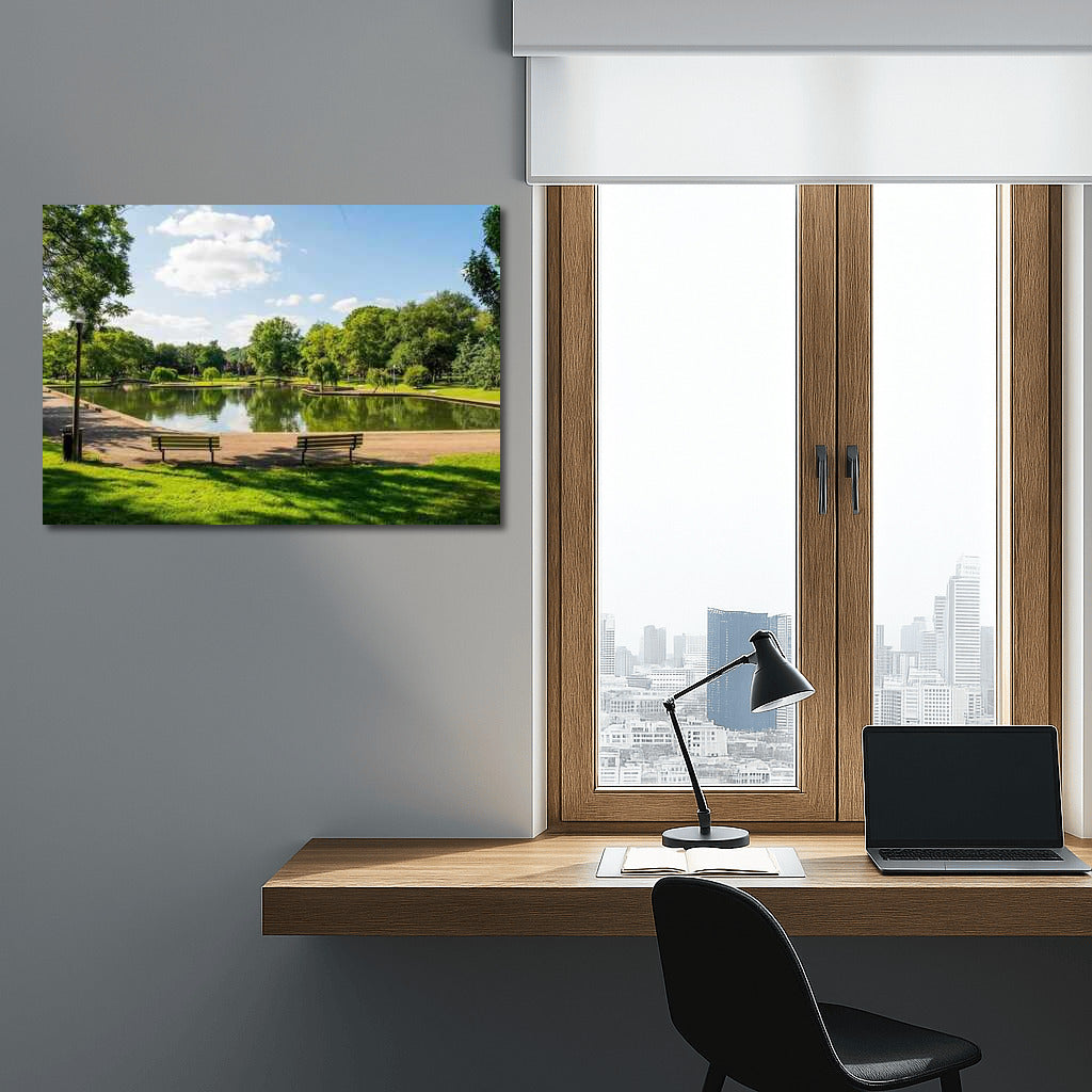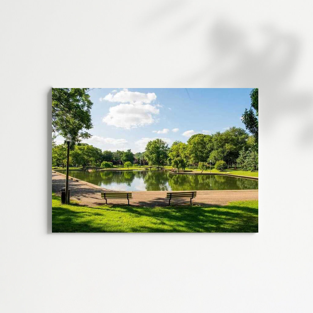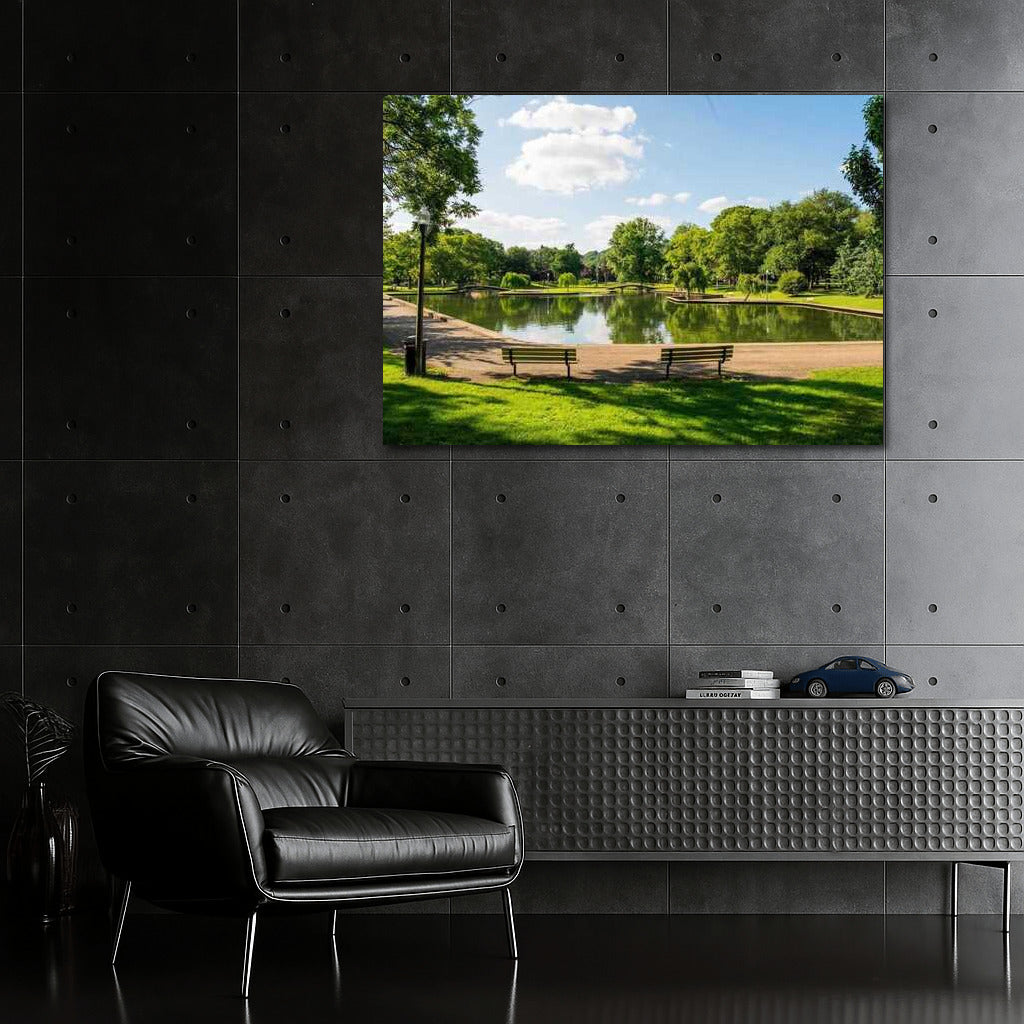 The tranquility and harmony of park architecture on a poster that will decorate any space, filling it with the freshness of nature. See more from the collection: Architectural Art
