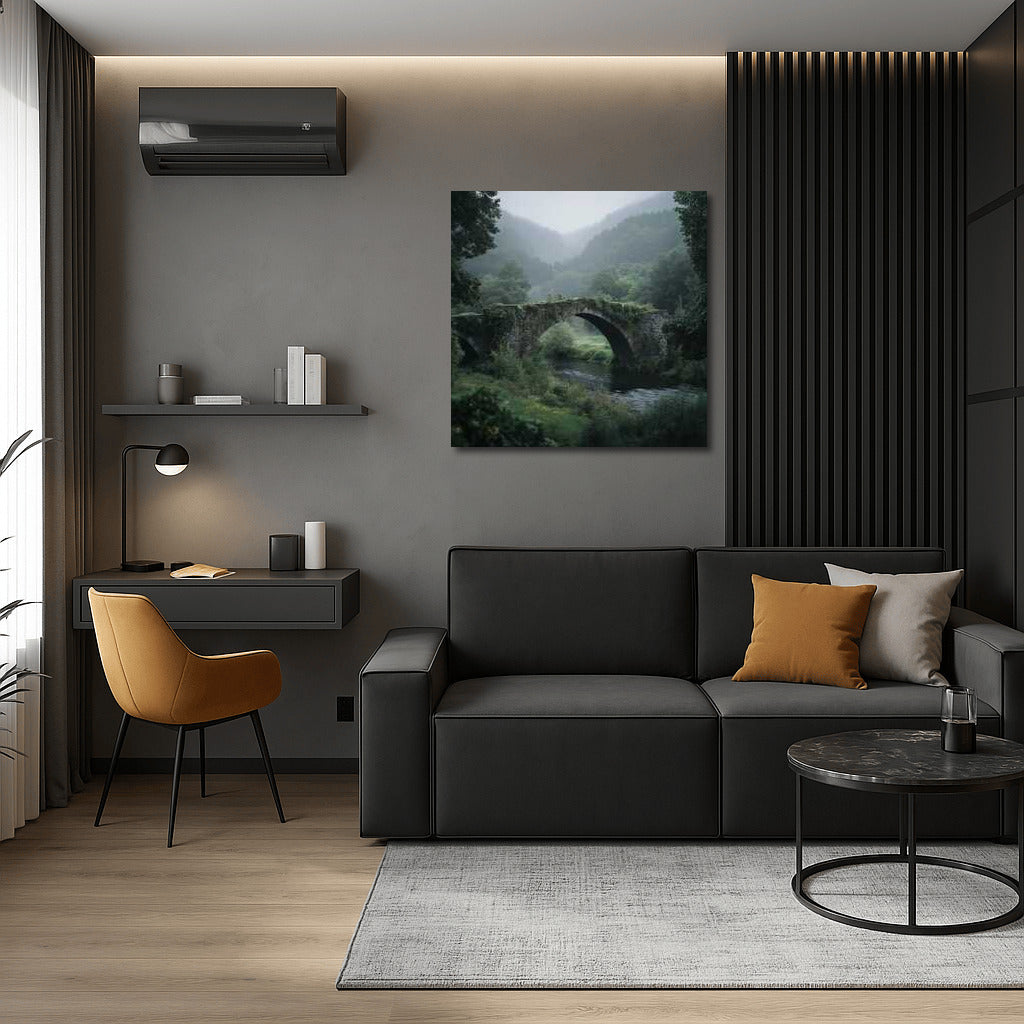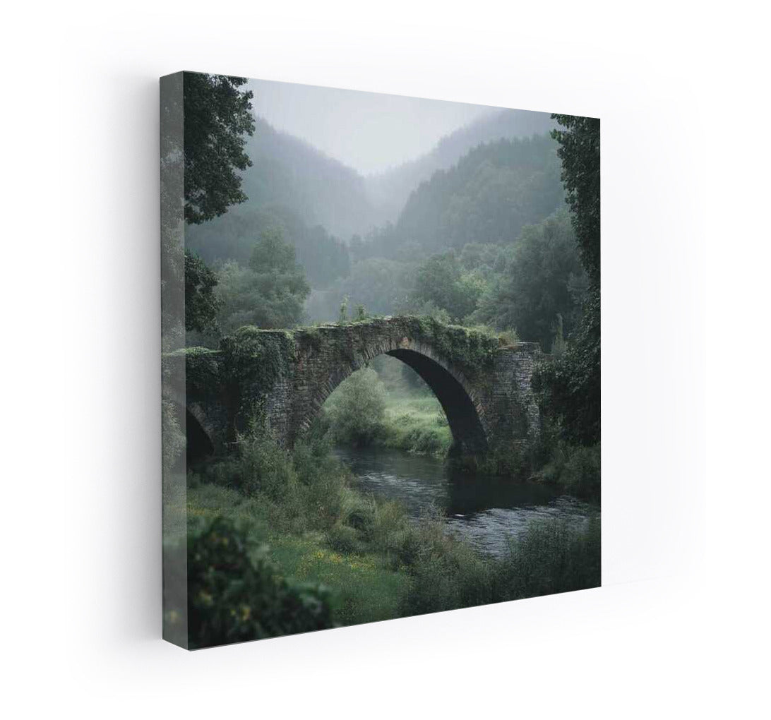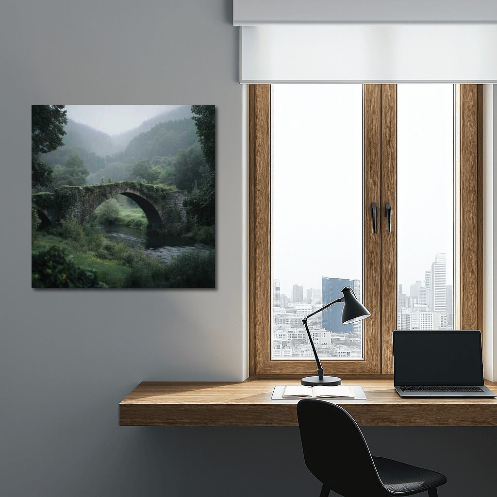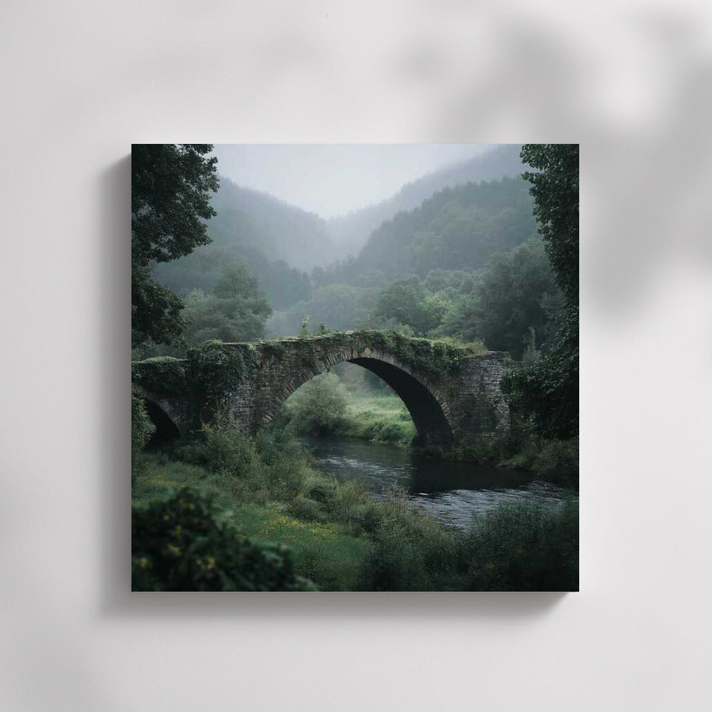 Architectural Symphony: Magic Bridge in Fog and Greenery Wall Art