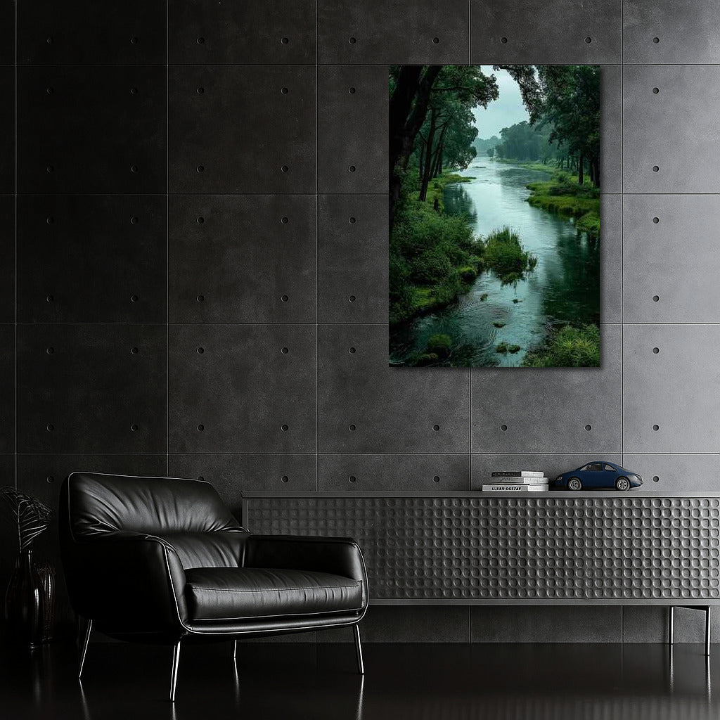Inspiring poster with Argentina landscape: green river among evergreen forests, enlivening the atmosphere of your space. See more from the collection: Argentina Art