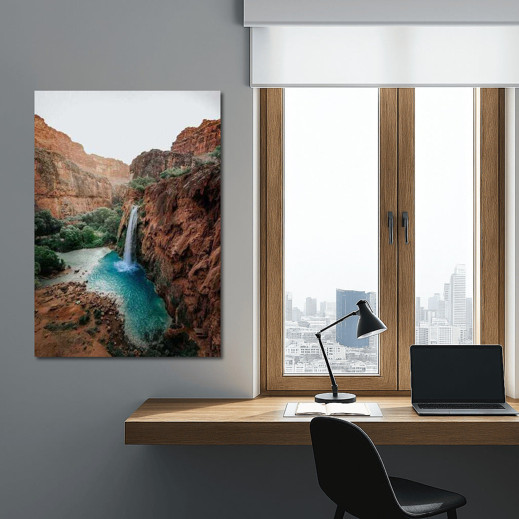 Immerse yourself in the wild beauty of Arizona with a poster that captures the majesty of cascading waterfalls and the majestic nature of the United States. See more from the collection: Country Art