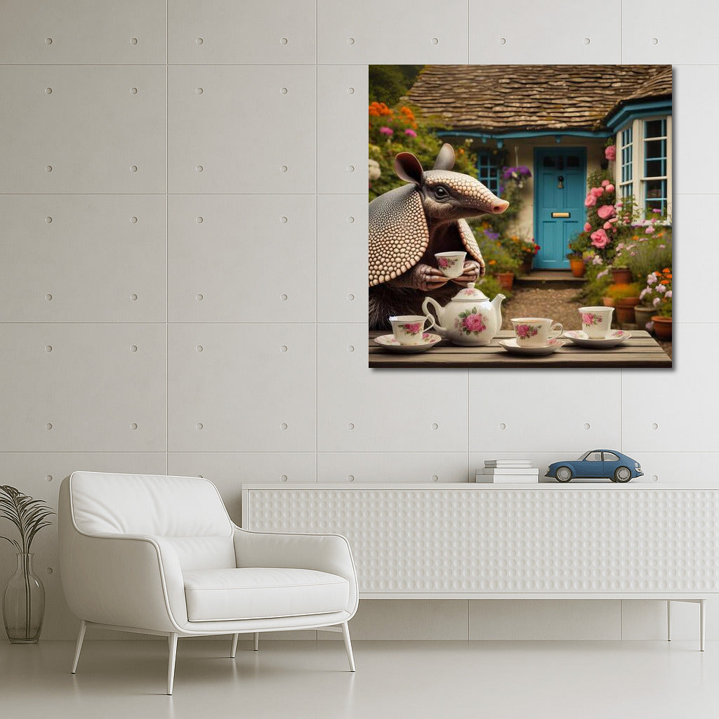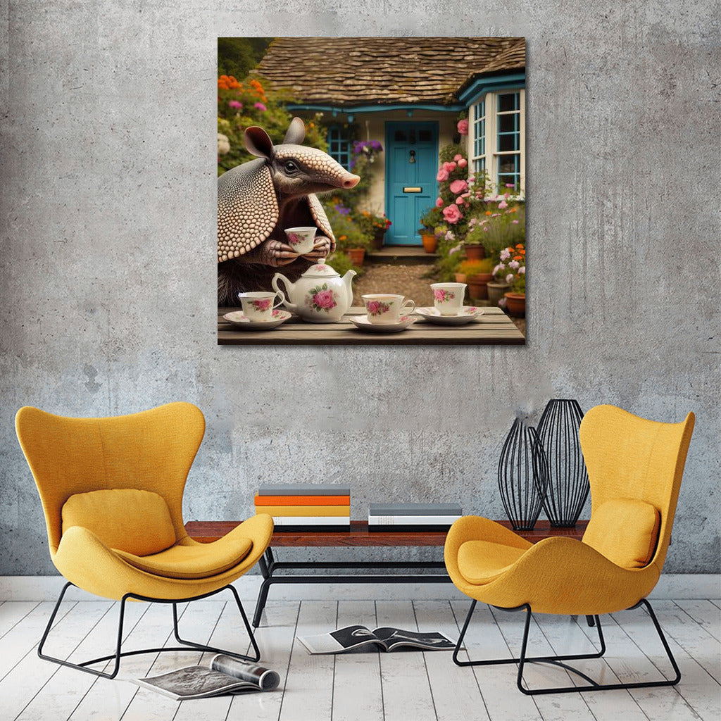 Armadillo Tea Party in the Blooming English Garden Wall Art