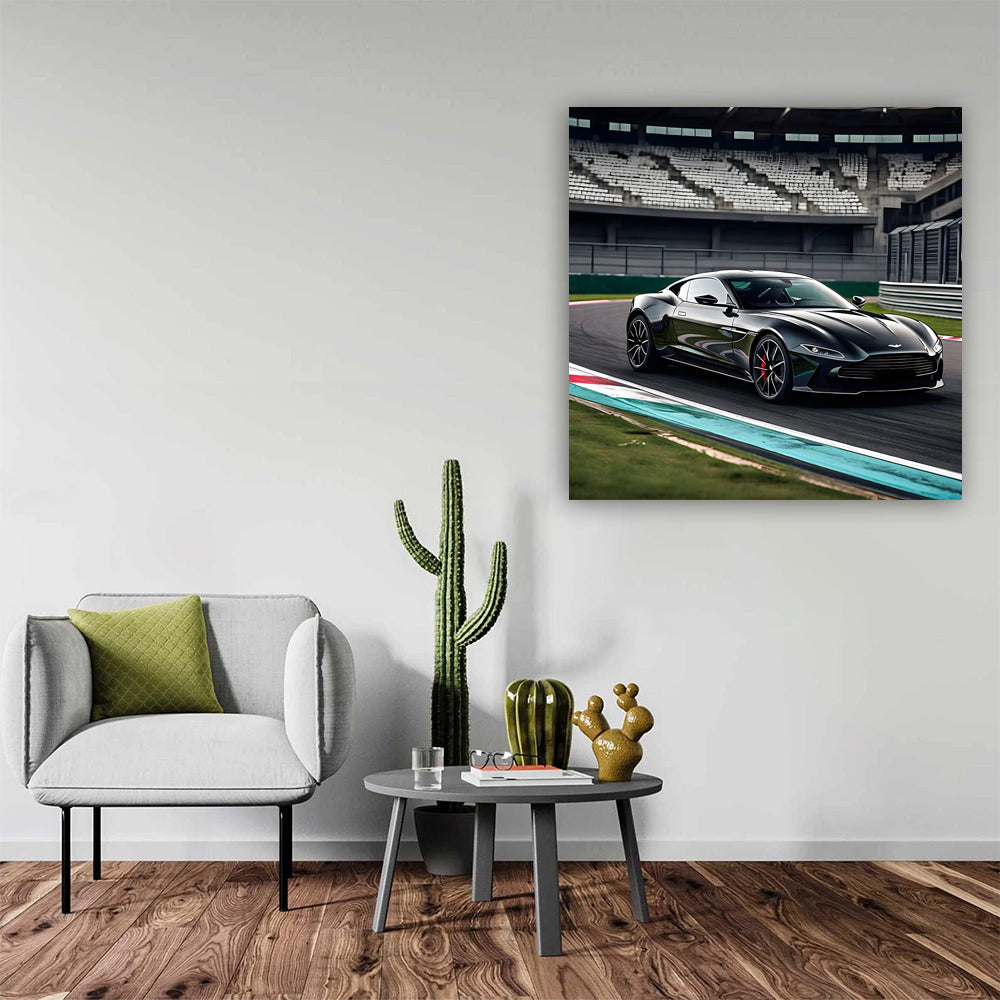 Imagine a poster of a crazy black Aston Martin DB11 racing around a ring. It’s not just a painting, it’s the embodiment of speed and style. Wall art for those who live on the edge and understand a thing or two about luxury cars. See more from the collection: Aston Martin Art