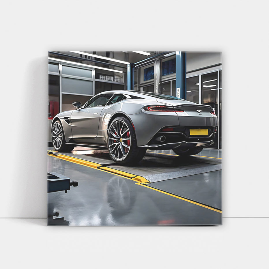 Well, bro, look at this painting - a grey Aston Martin DB11 in a car service. This is not just a poster, this is real wall art for those who know a lot about cars. It's like hanging on the wall and saying: "I am the king of the road". See more from the collection: Aston Martin Art