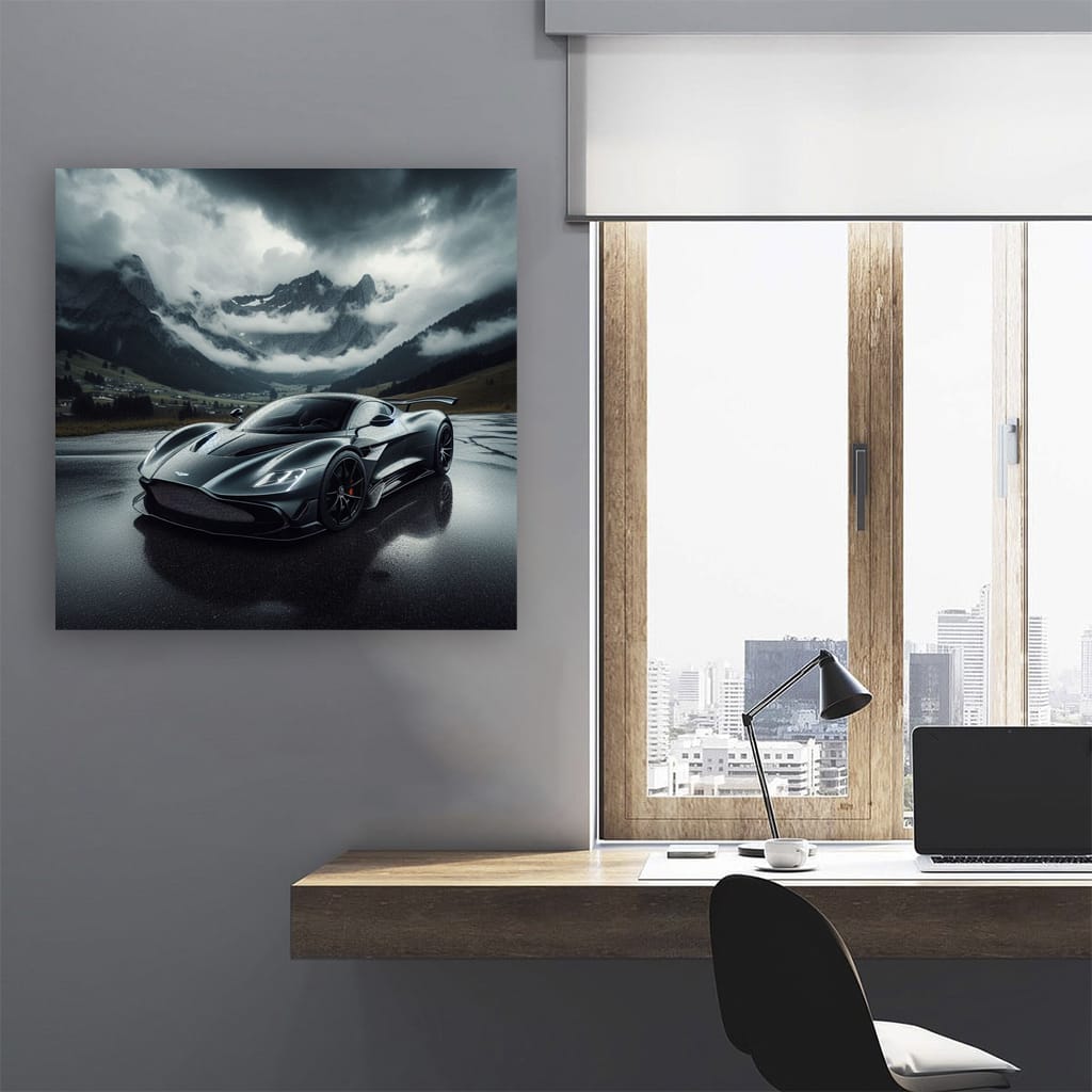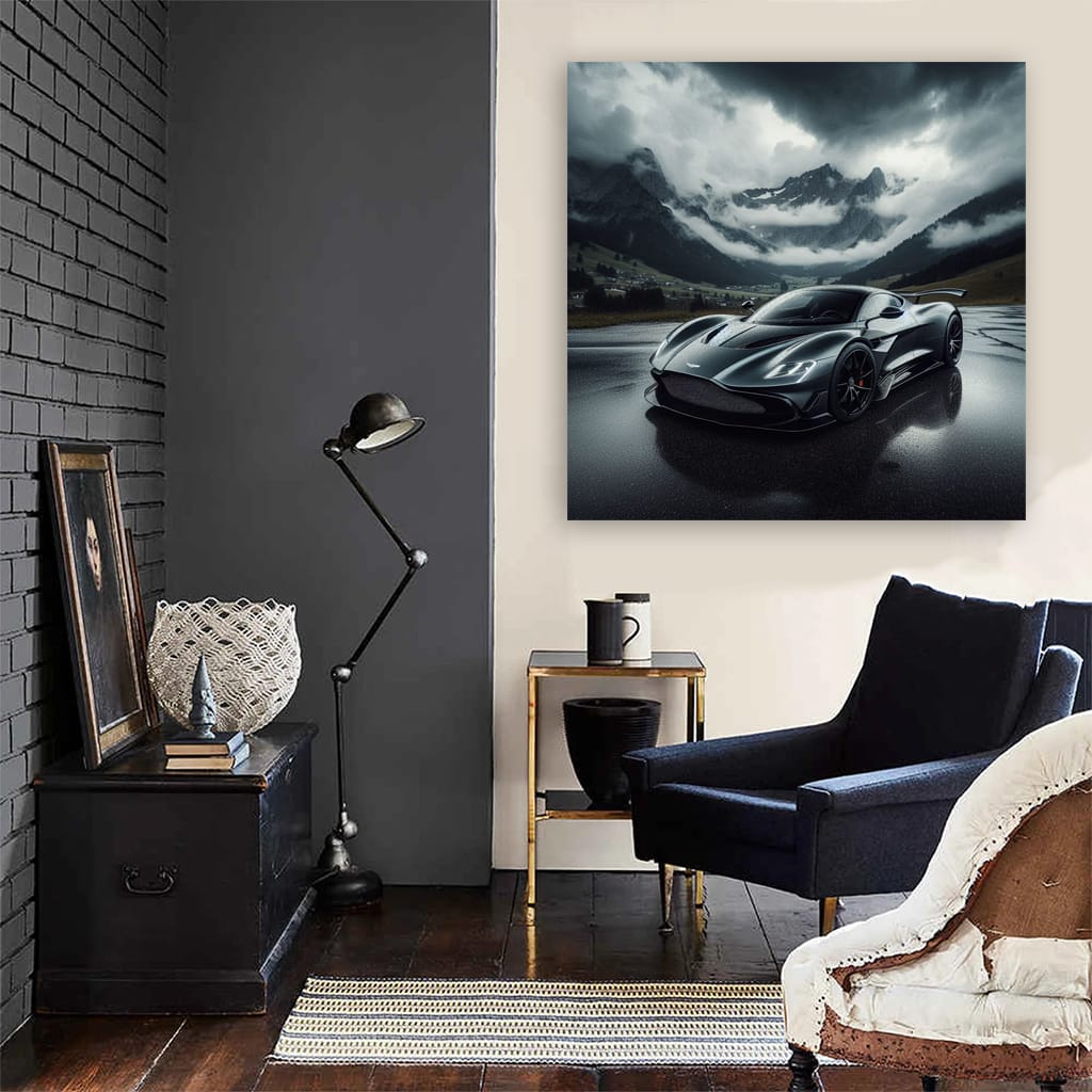 Check out this poster of the Aston Martin Valkyrie, where it slices through the clouds like a razor. This is wall art for true speed freaks who live on adrenaline. A painting that gives you goosebumps, and even the garage becomes a temple of a car enthusiast. See more from the collection: Aston Martin Art