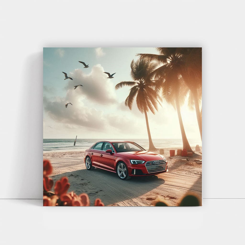 Audi A3 on Sandy Shore - Sleek and Stylish Ride Wall Art