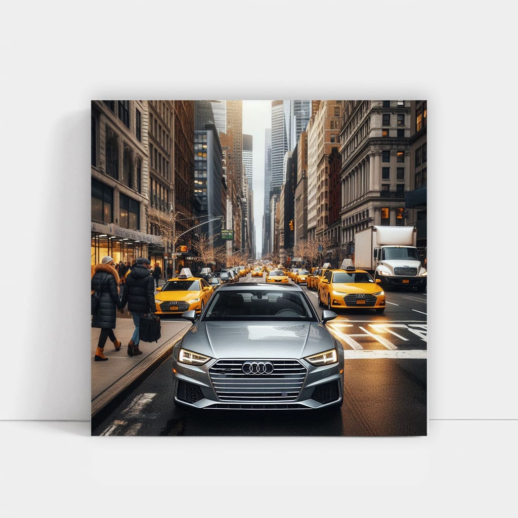 This poster is just the bomb! Wall art for real car lovers. Audi A4 in New York is like adrenaline in the engine. The painting just screams about speed and power. Hang it on the wall - and you will immediately feel like you are in the center of the action. See more from the collection: Audi A4 Art
